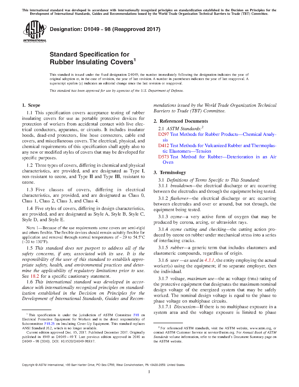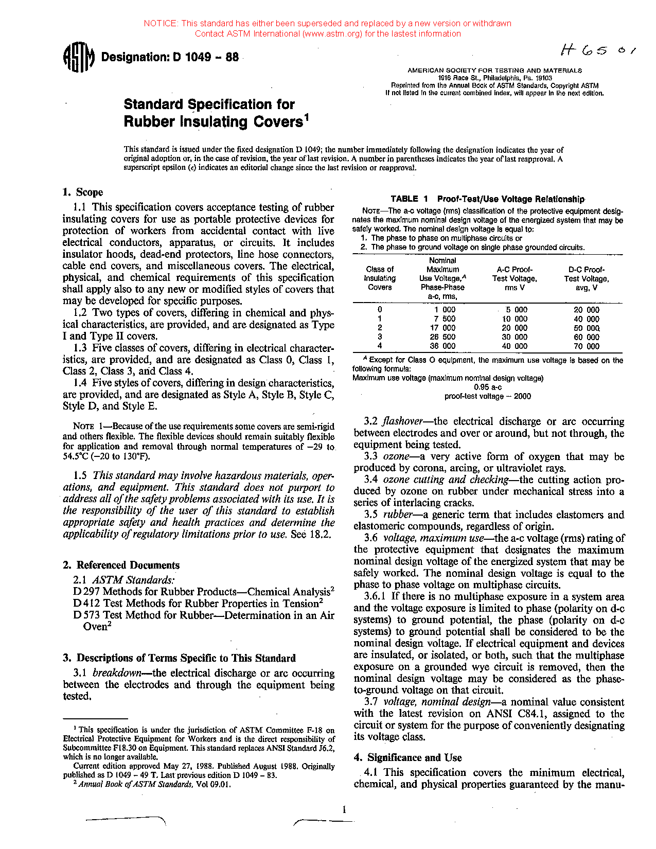1.3 Five classes of covers, differing in electrical characteristics, are provided, and are designated as Class 0, Class 1, Class 2, Class 3, and Class 4.