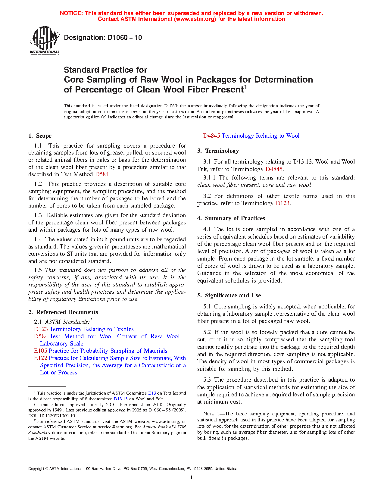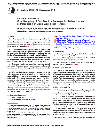 5.1 Core sampling is widely accepted, when applicable, for obtaining a laboratory sample representative of the clean wool fiber present in a lot of packaged raw wool.