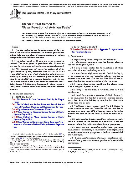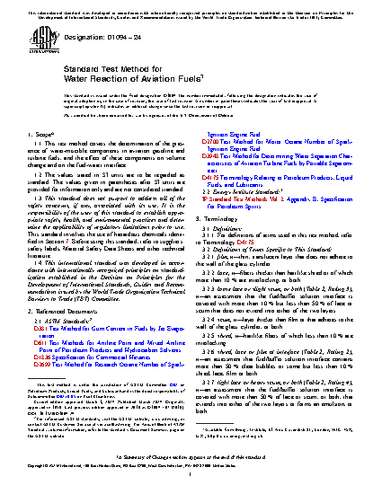 1.1 This test method covers the determination of the presence of water-miscible components in aviation gasoline and turbine fuels, and the effect of these components on volume change and on the fuel-water interface.