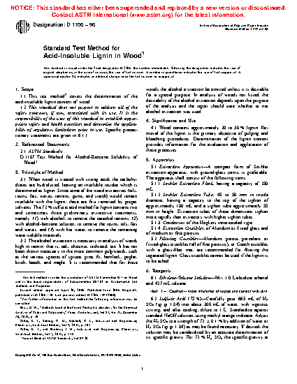 1.1 This test method3 covers the determination of the acid-insoluble lignin content of wood.