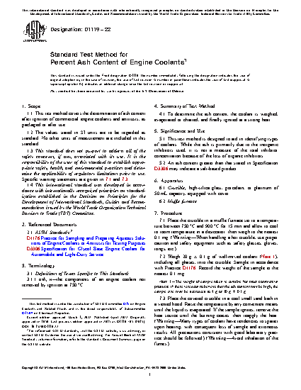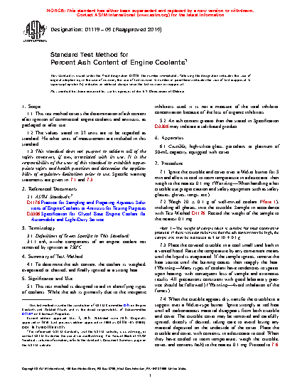 1.1 This test method covers the determination of ash content after ignition of commercial engine coolants and antirusts, as packaged or after use.