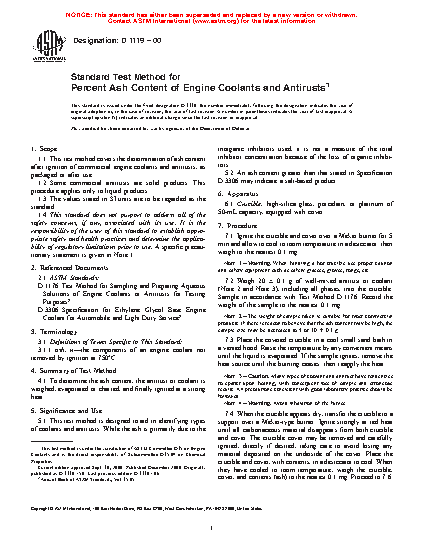 5.1 This test method is designed to aid in identifying types of coolants. While the ash is primarily due to the inorganic inhibitors used, it is not a measure of the total inhibitor concentration because of the loss of organic inhibitors.