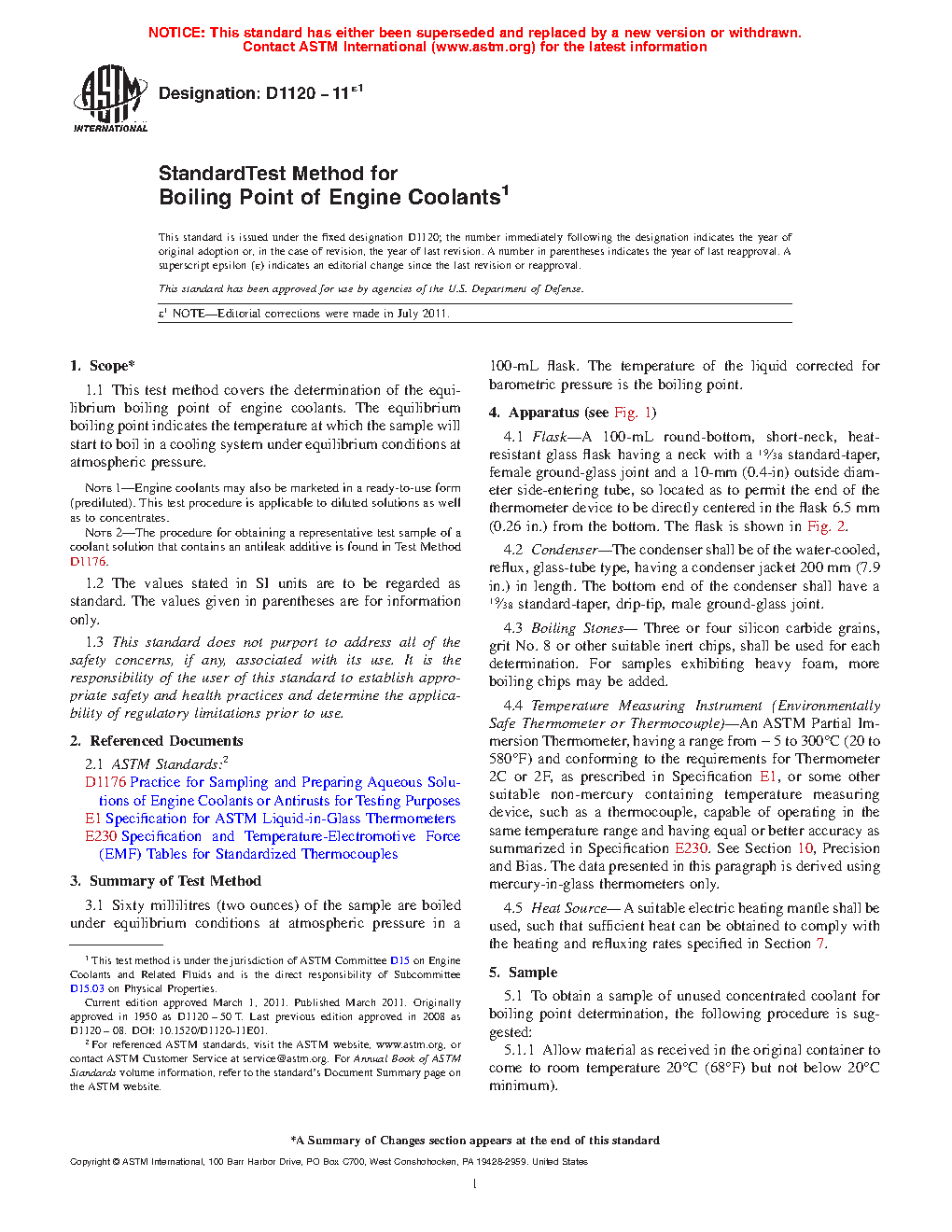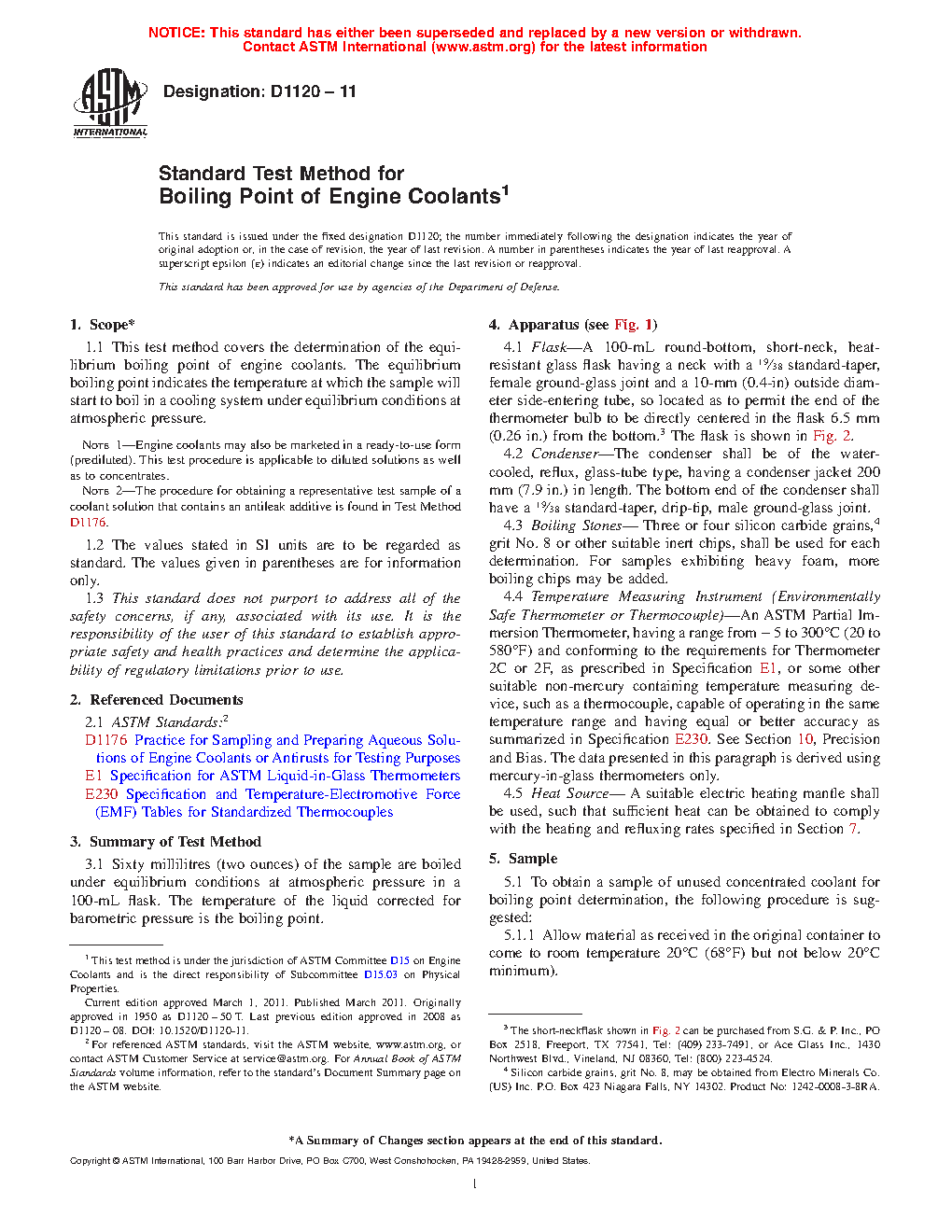 Note 1: Engine coolants may also be marketed in a ready-to-use form (prediluted). This test procedure is applicable to diluted solutions as well as to concentrates.