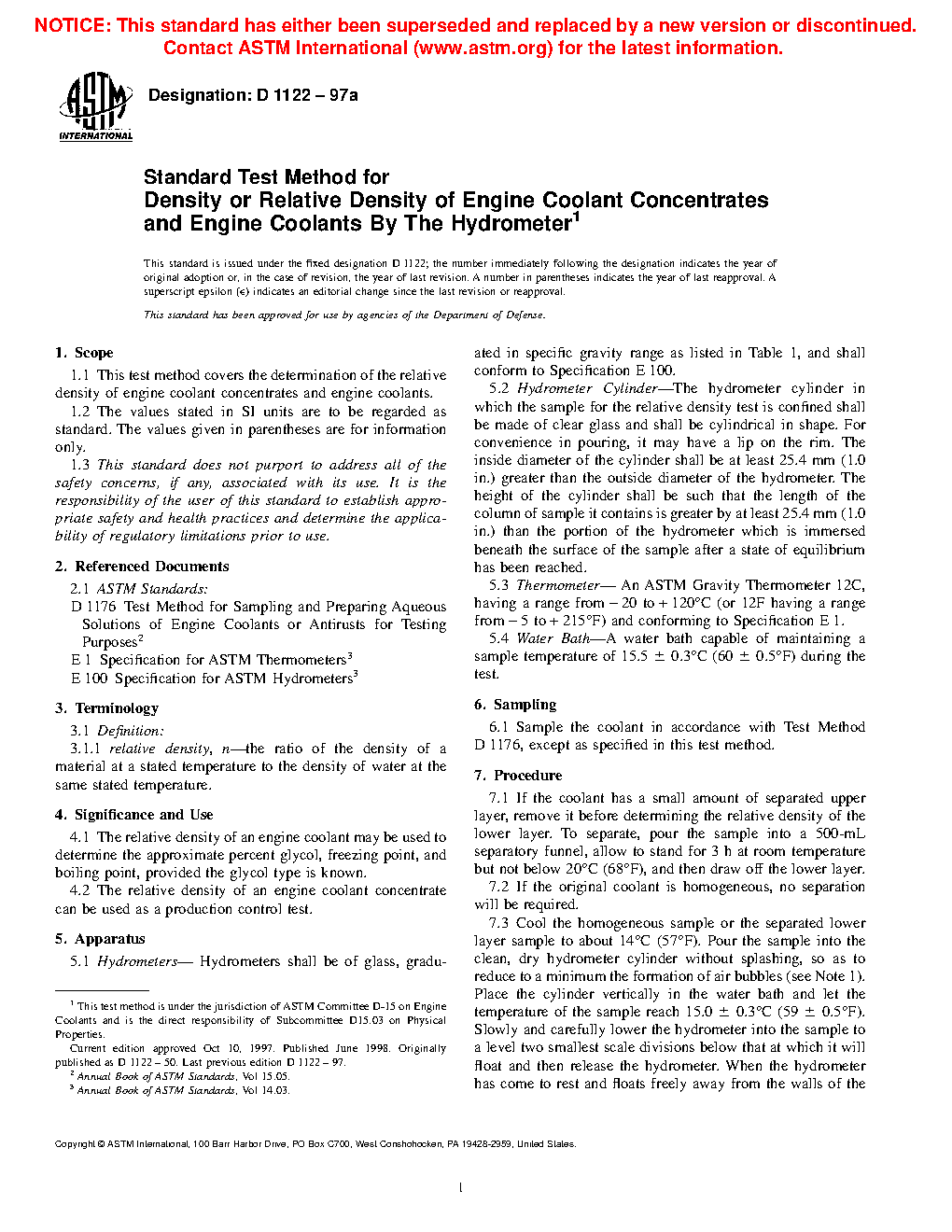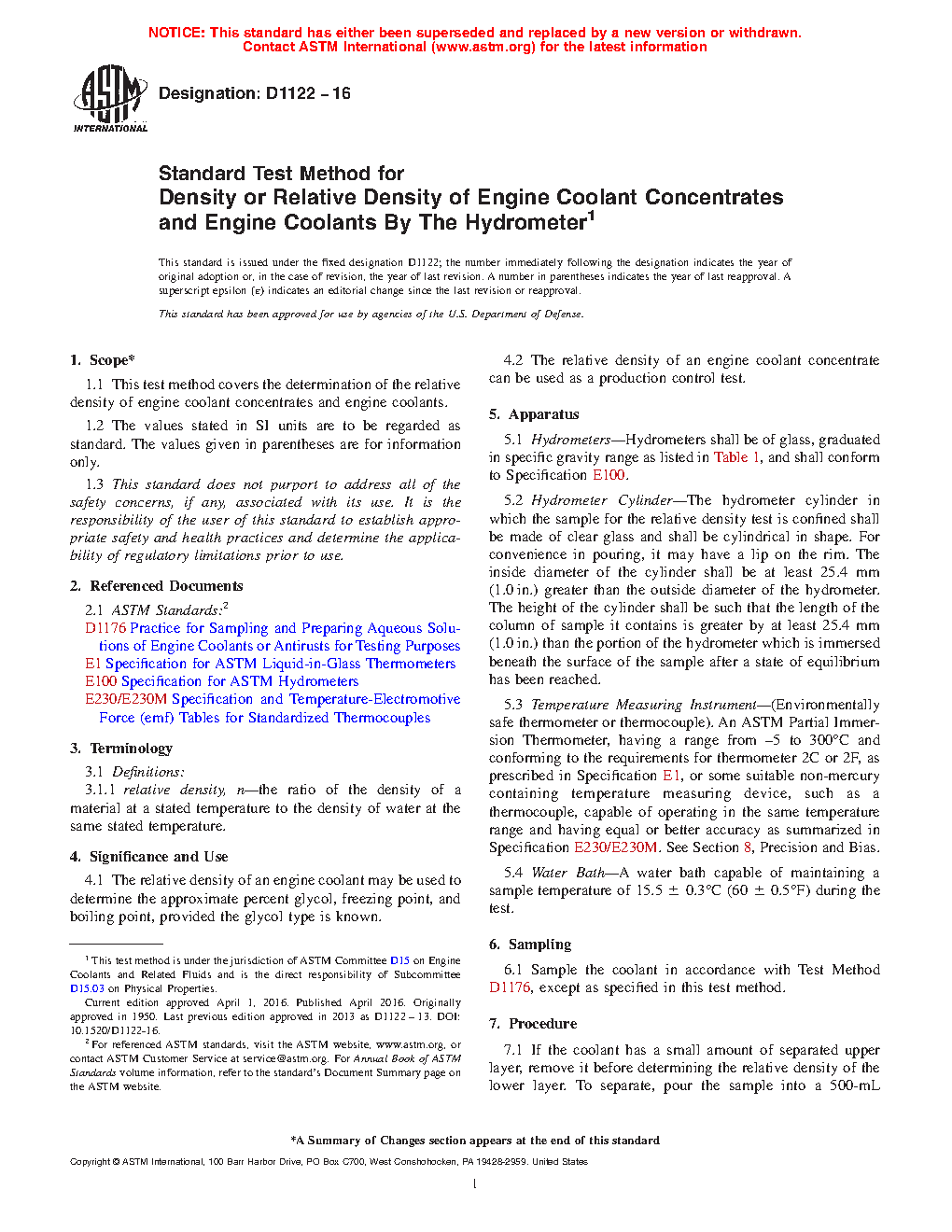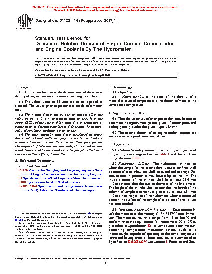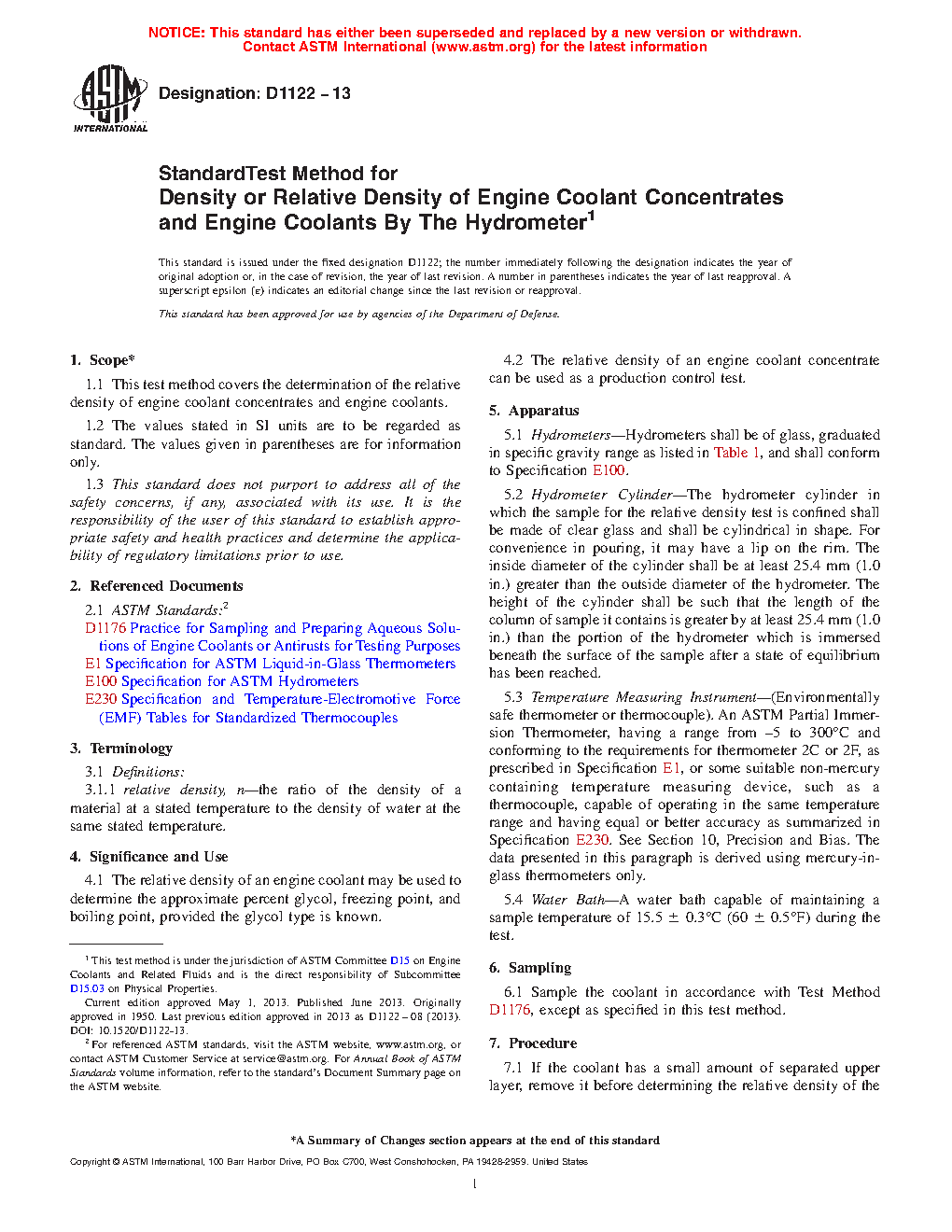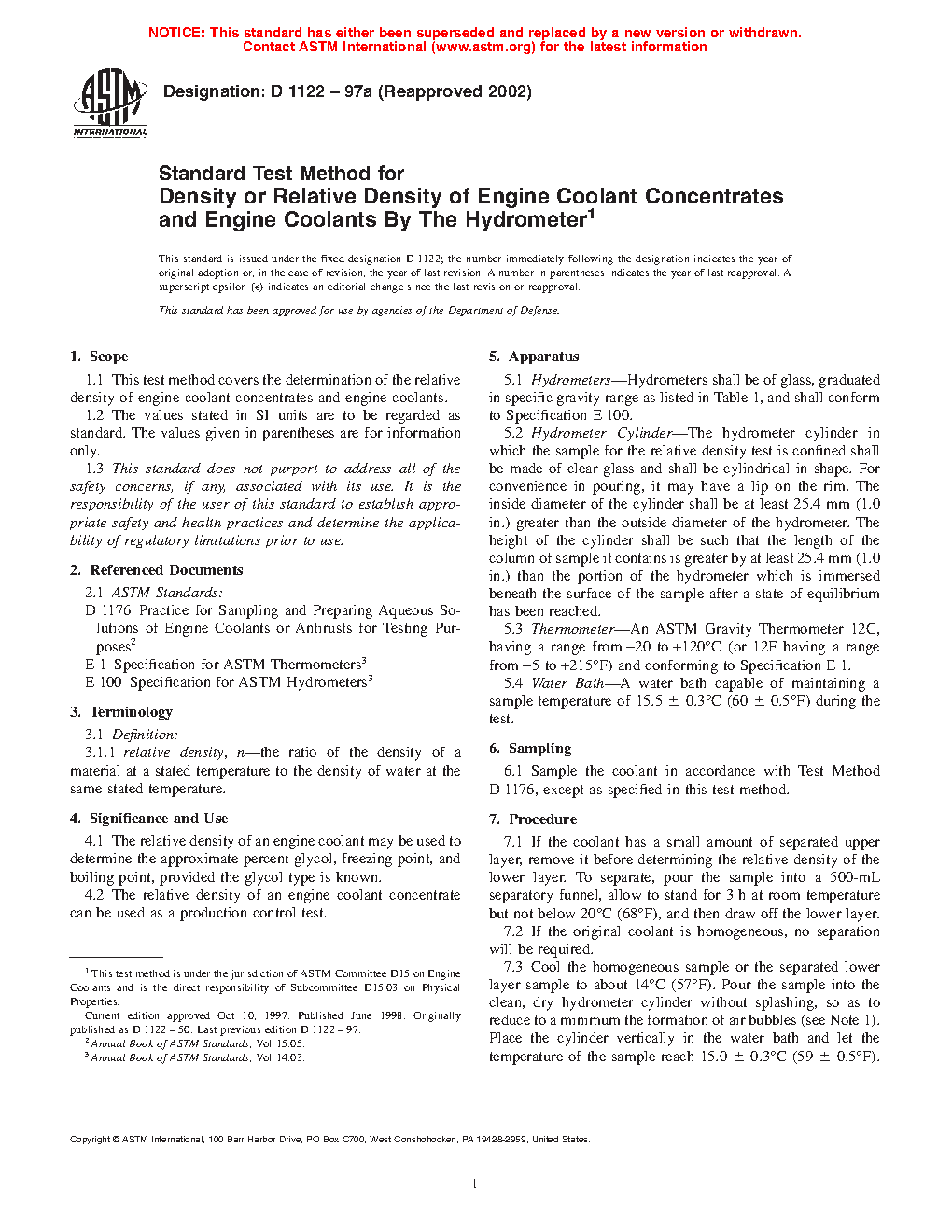 4.2 The relative density of an engine coolant concentrate can be used as a production control test.