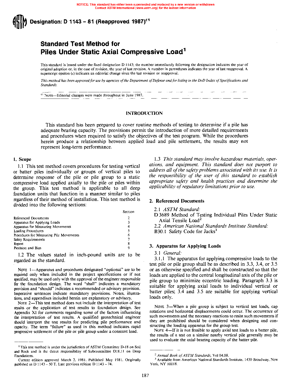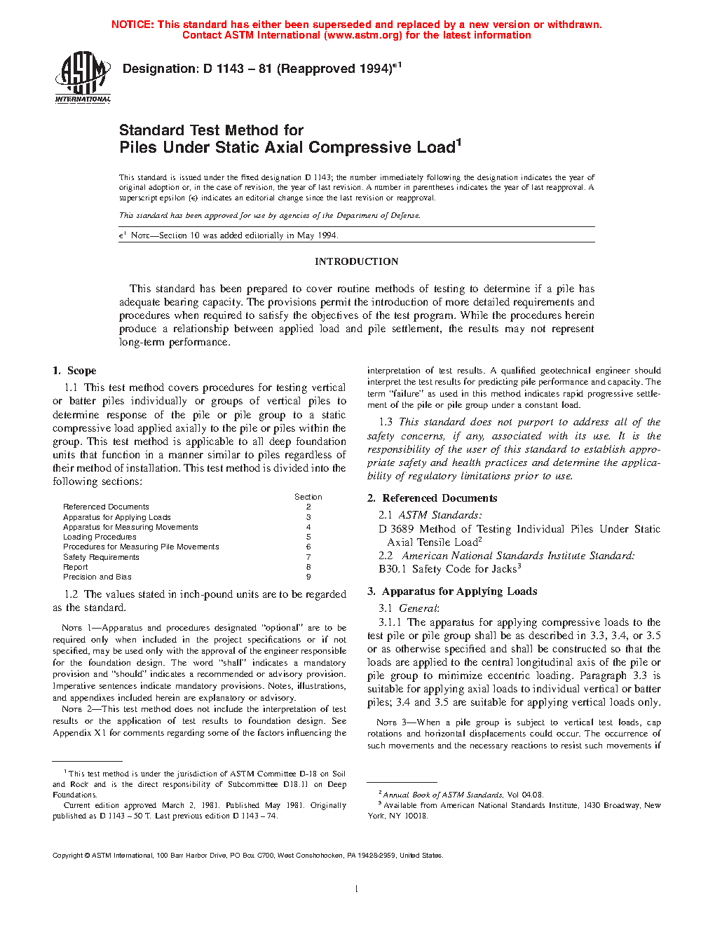 Standard Test Method for Piles Under Static Axial Compressive Load