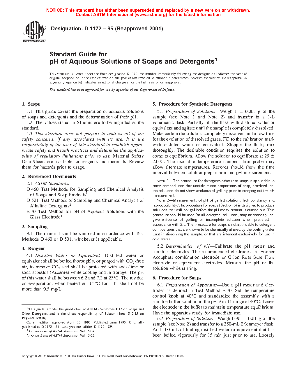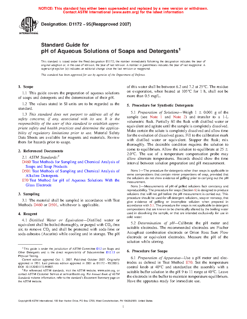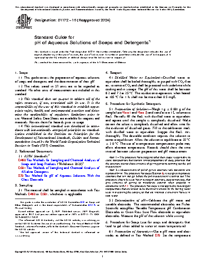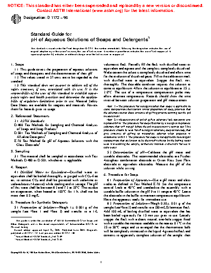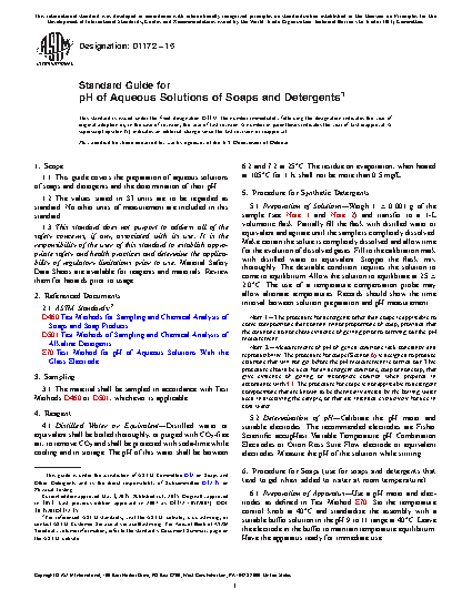 1.1 This guide covers the preparation of aqueous solutions of soaps and detergents and the determination of their pH.