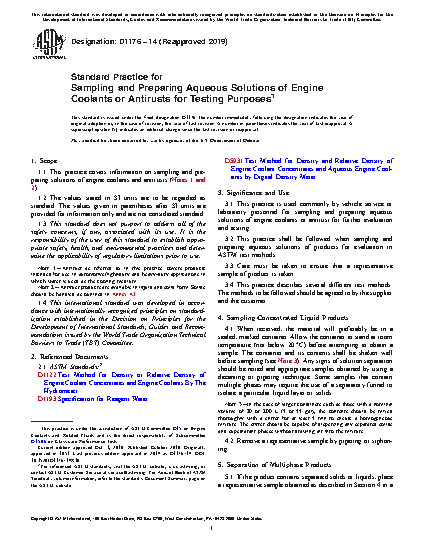 3.1 This practice is used commonly by vehicle service or laboratory personnel for sampling and preparing aqueous solutions of engine coolants or antirust for further evaluation and testing.