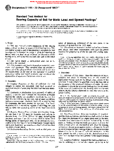 Standard Test Method for Bearing Capacity of Soil for Static Load and Spread Footings
