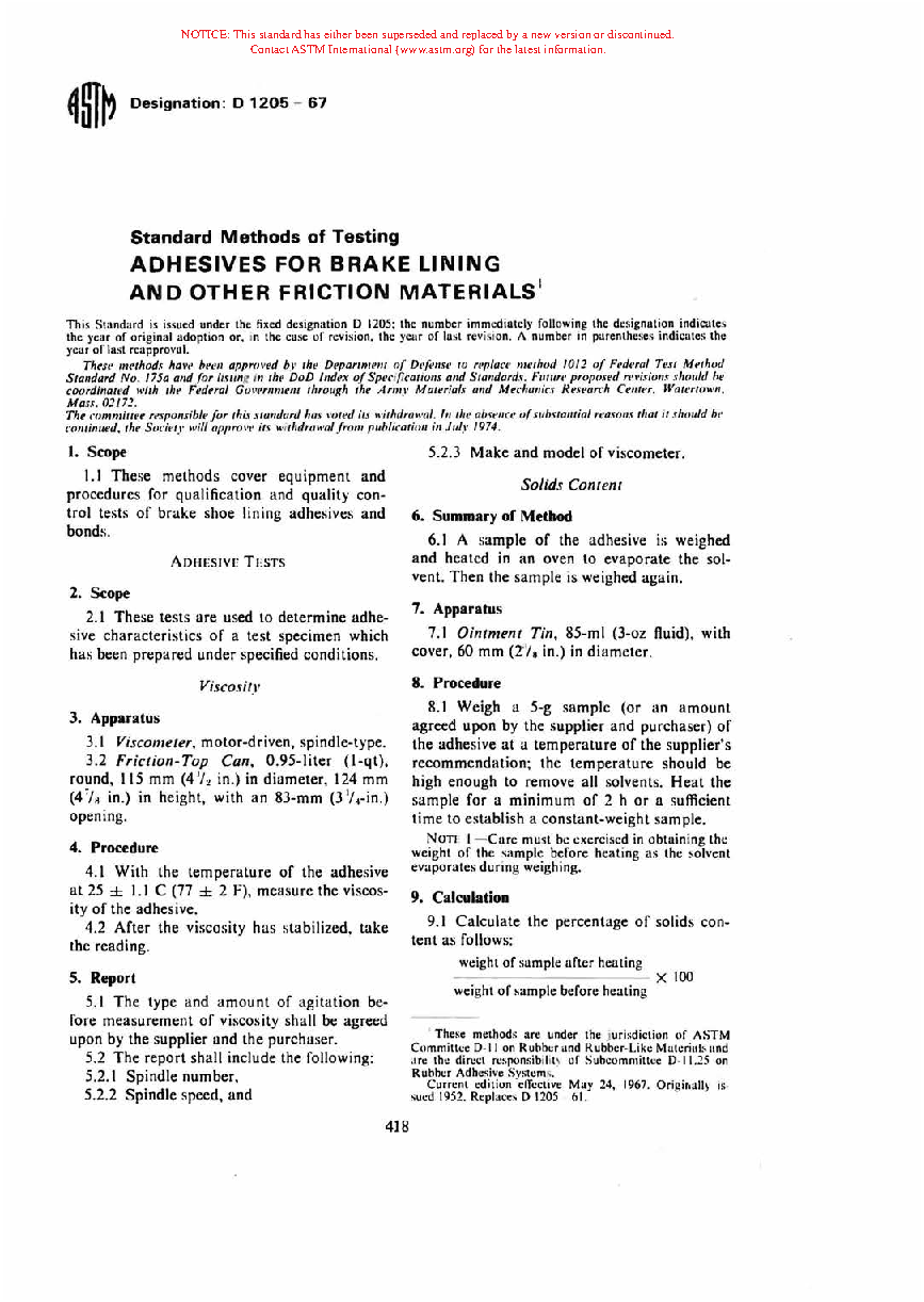 Methods of Testing Adhesives for Brake Lining and Other Friction Materials (Withdrawn 1973)
