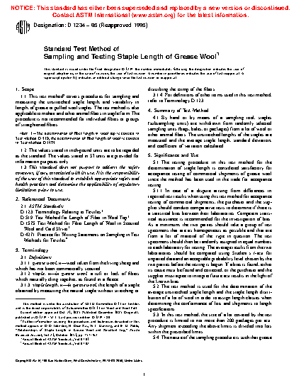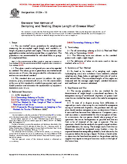 1.1 This test method2 covers procedures for sampling and measuring the unstretched staple length, and variability in length, of grease or pulled wool staples. The test method is also applicable to mohair and other animal fibers in staple form. The procedure is not recommended for individual fibers or groups of straightened fibers.