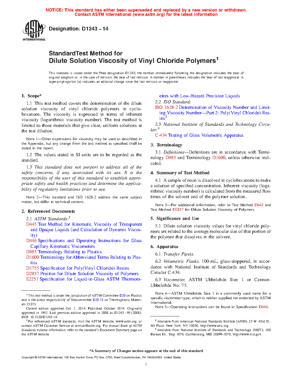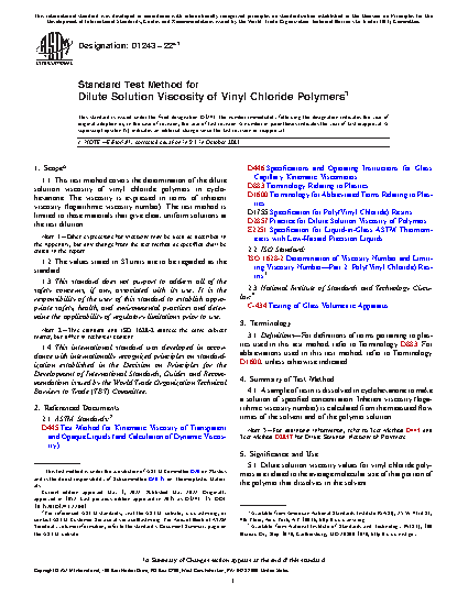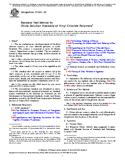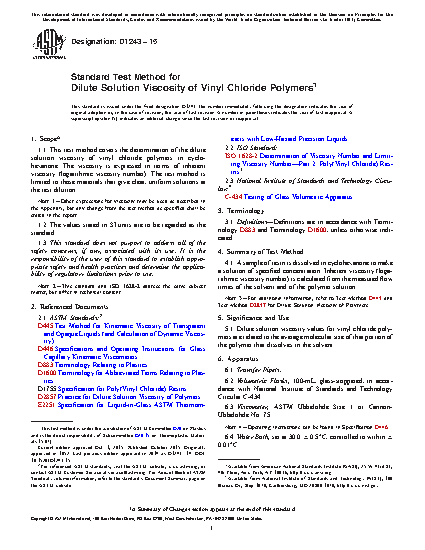 Standard Test Method for Dilute Solution Viscosity Of Vinyl Chloride Polymers