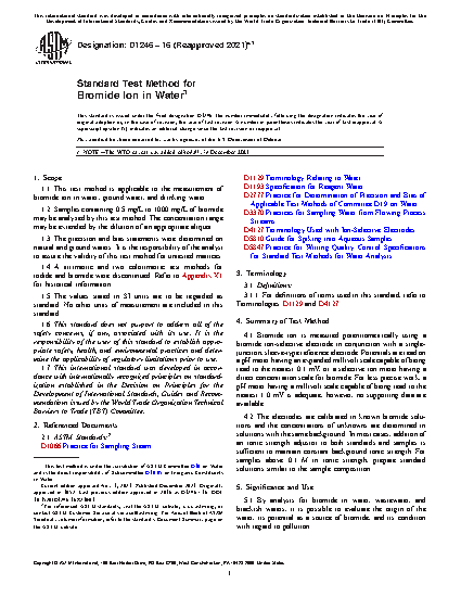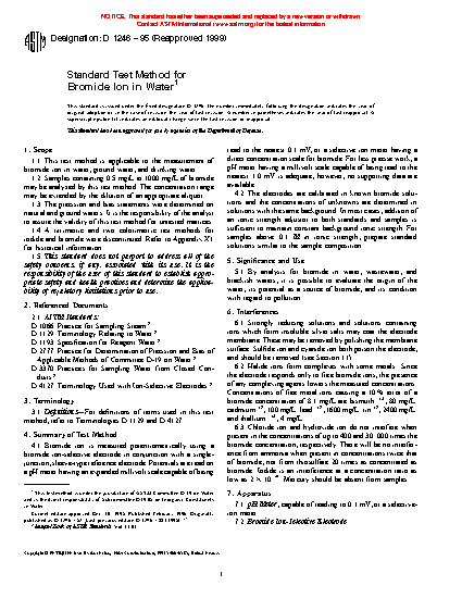 1.1 This test method is applicable to the measurement of bromide ion in water, ground water, and drinking water.