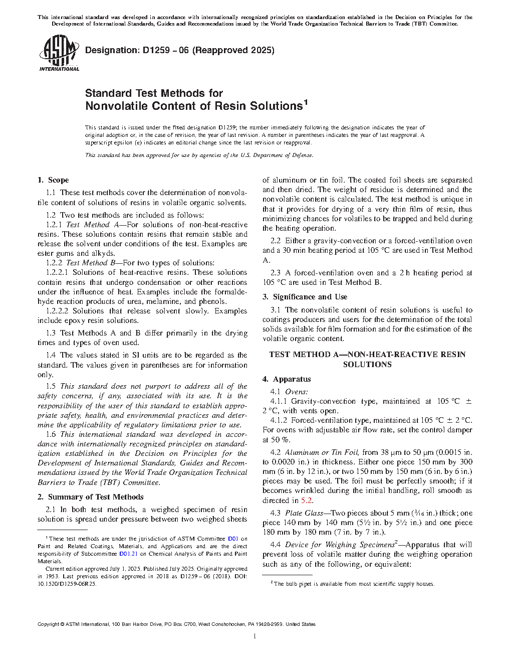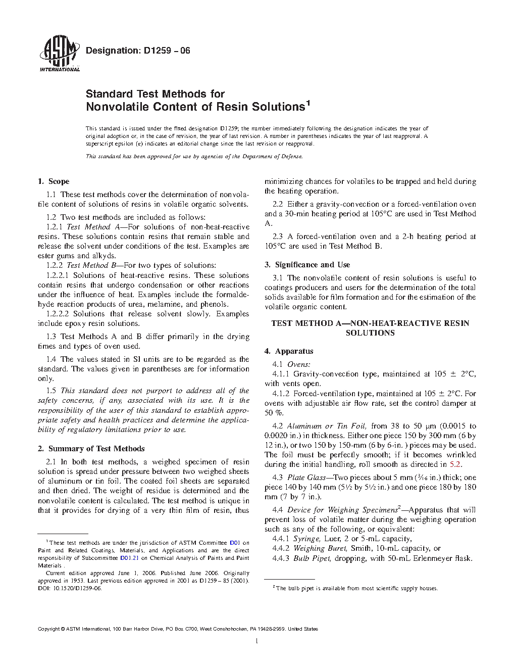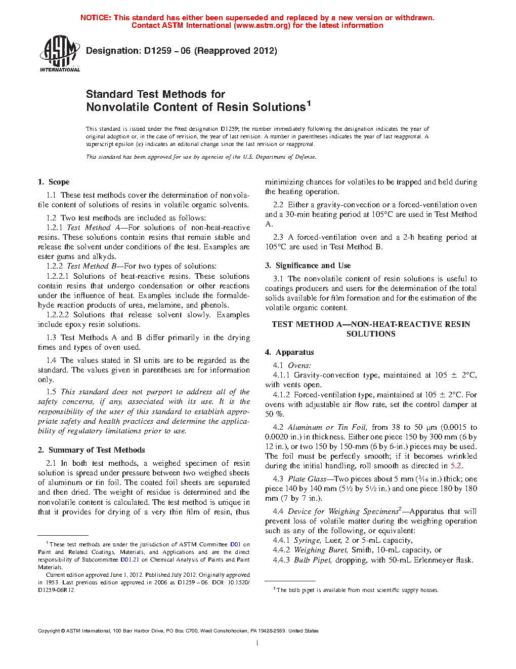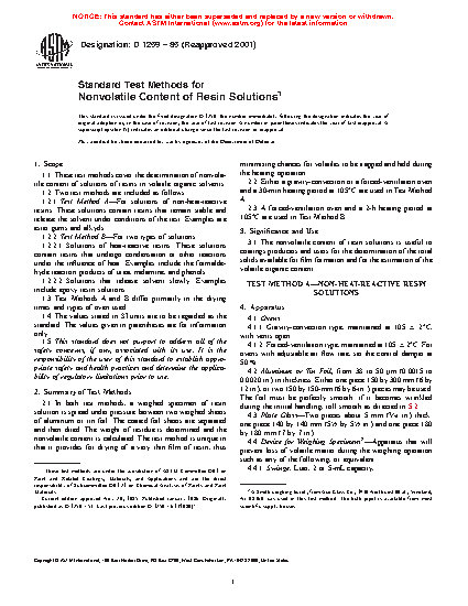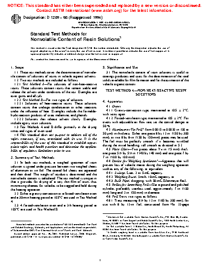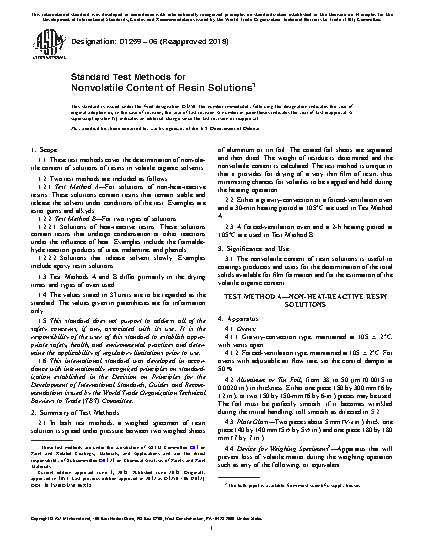 1.1 These test methods cover the determination of nonvolatile content of solutions of resins in volatile organic solvents.