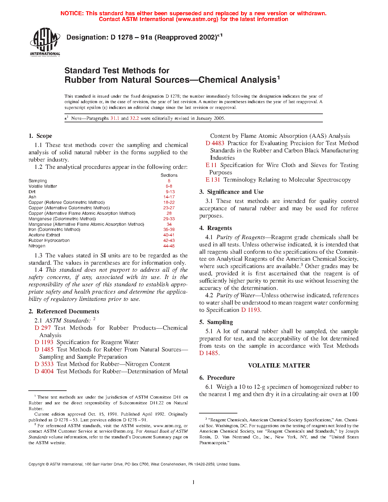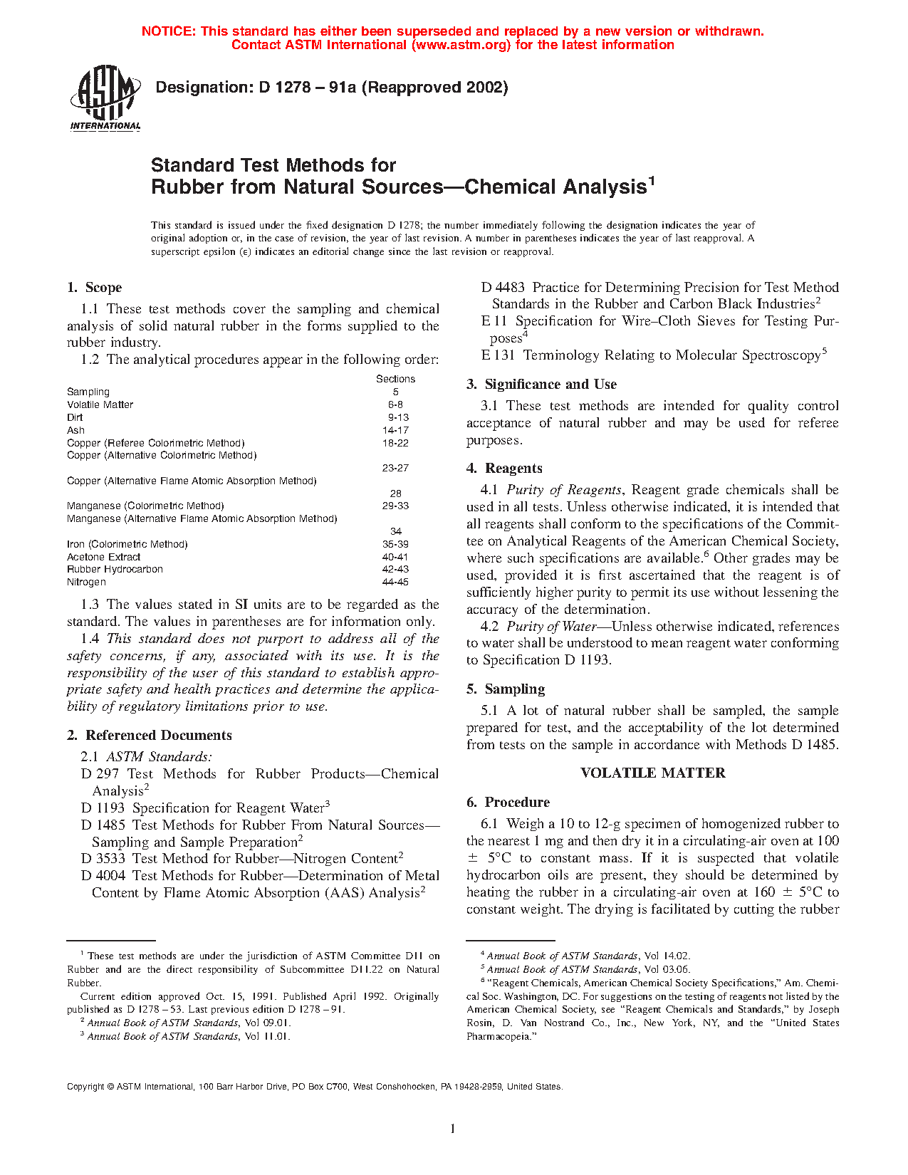 3.1 These test methods are intended for quality control acceptance of natural rubber and may be used for referee purposes.