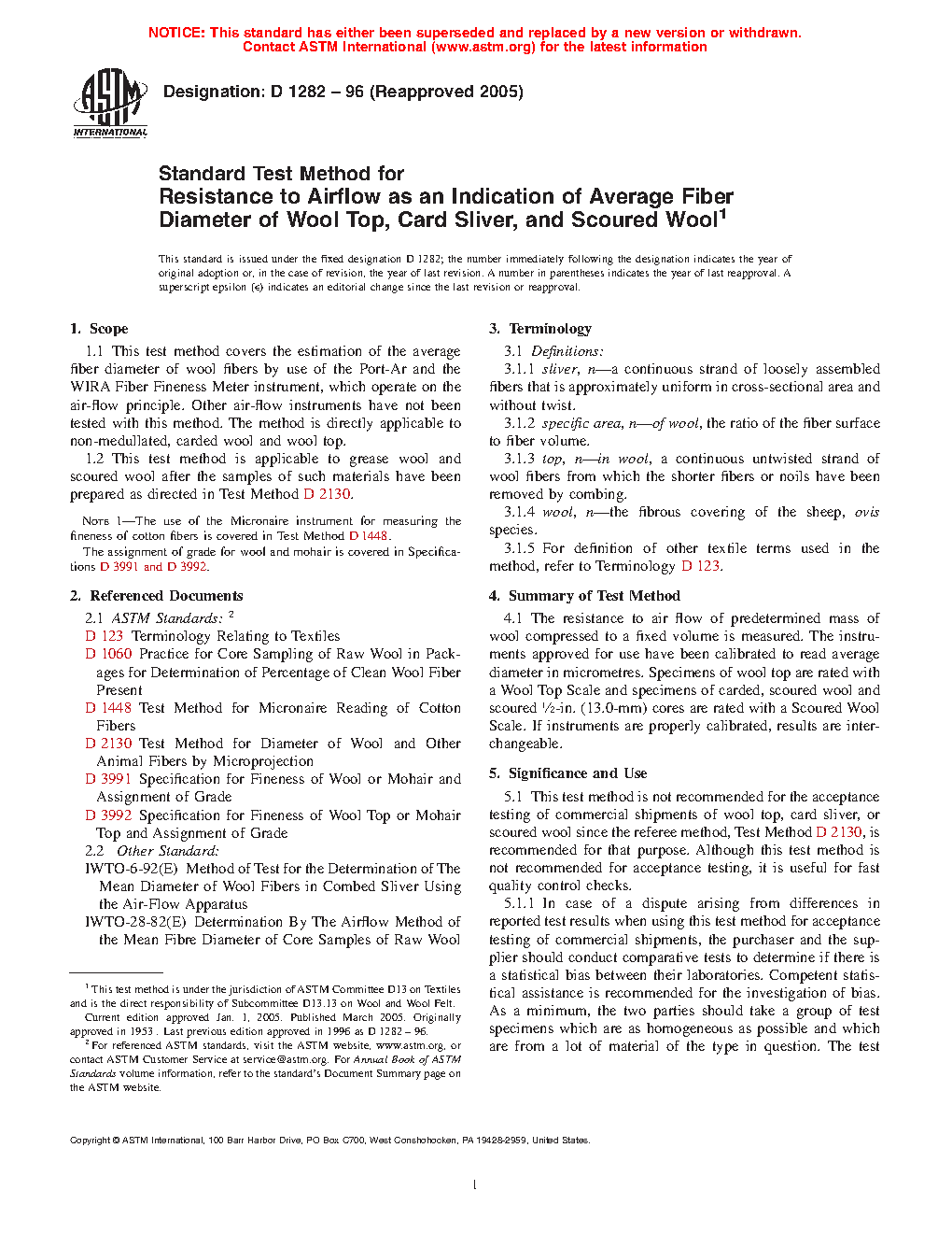 1.2 This test method is applicable to grease wool and scoured wool after the samples of such materials have been prepared as directed in Test Method D2130.