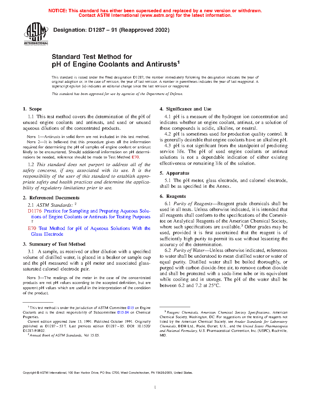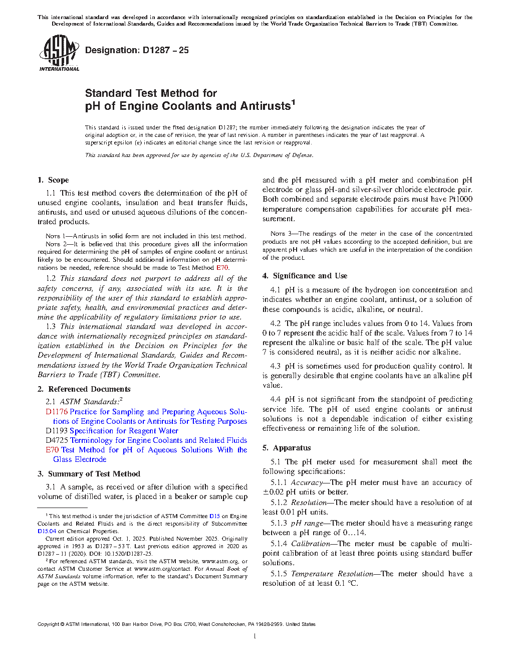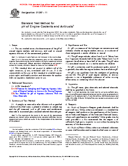 Note 2: It is believed that this procedure gives all the information required for determining the pH of samples of engine coolant or antirust likely to be encountered. Should additional information on pH determinations be needed, reference should be made to Test Method E70.