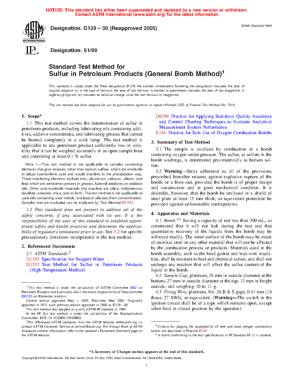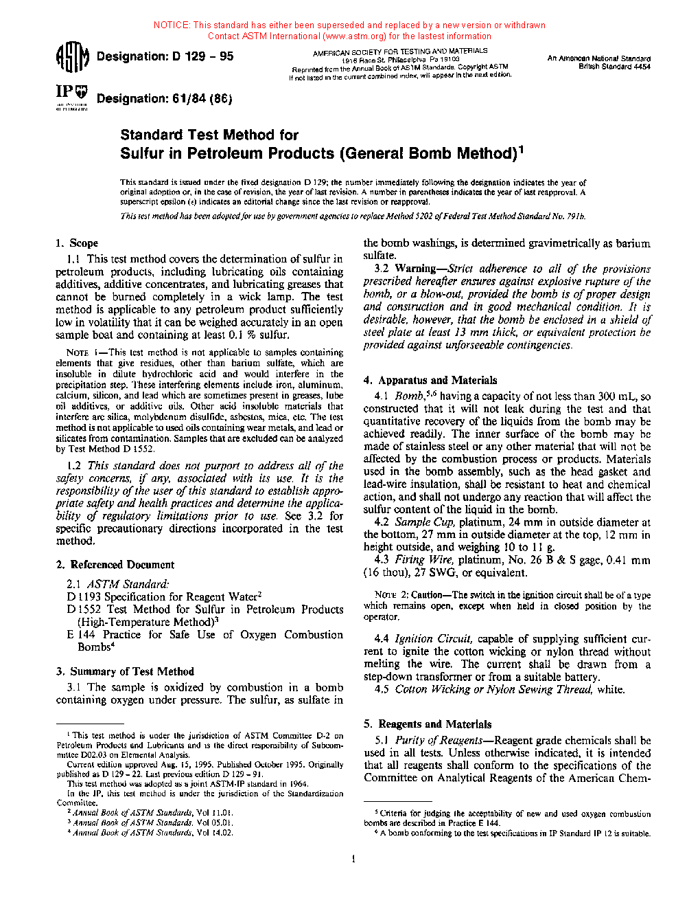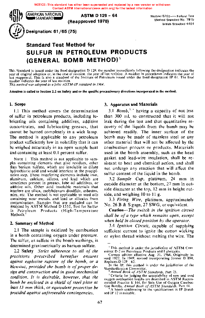 This standard details the general bomb test method for determination of the amount of sulfur in lubricating oils with additives, additive concentrates, lubricating greases, and other petroleum products with low volatilities. This test method entails oxidizing samples by combustion in a bomb containing oxygen under pressure. The amount of sulfur is determined by gravimetry. Materials needed for the test include a combustion bomb, sample cup, firing wire, ignition circuit, and a cotton wicking or nylon sewing thread. All reagents, samples, and other chemicals used for the test should conform to the required concentration and purity.