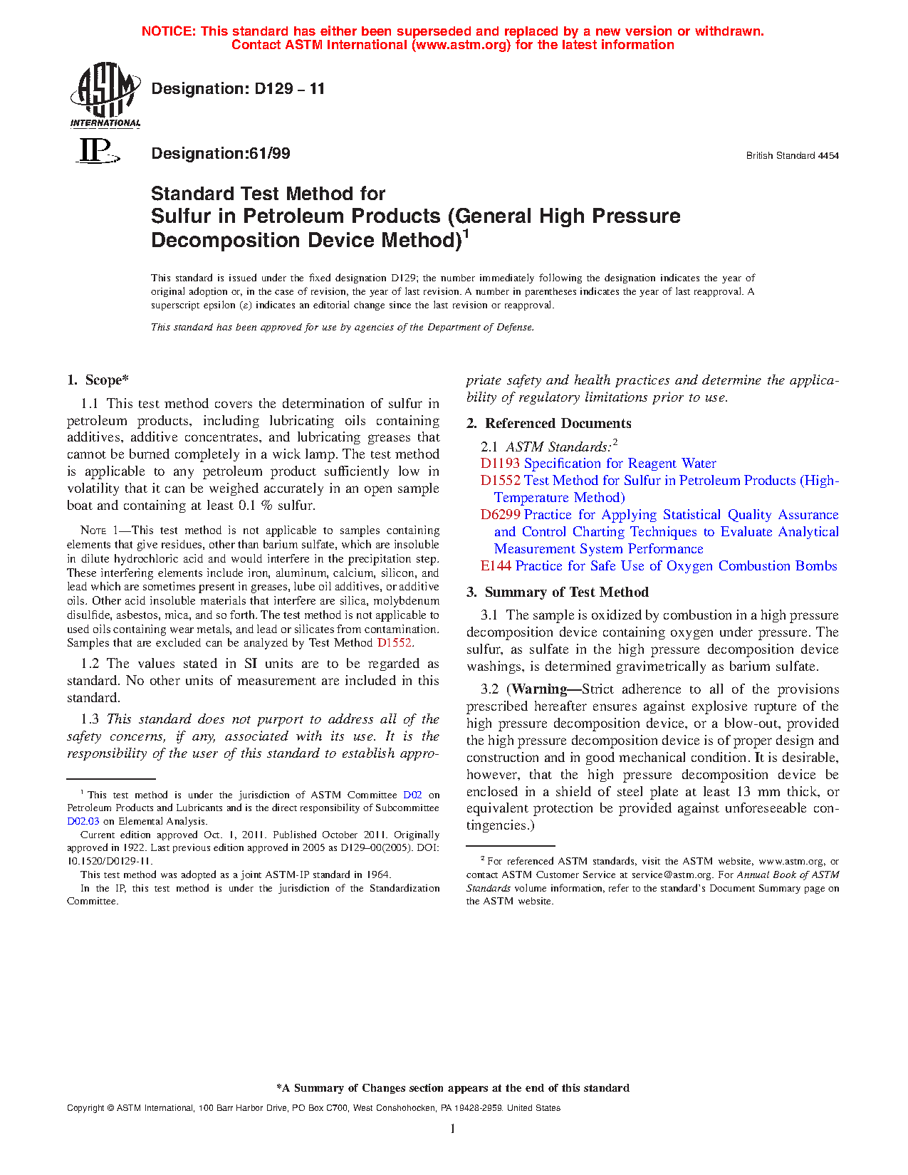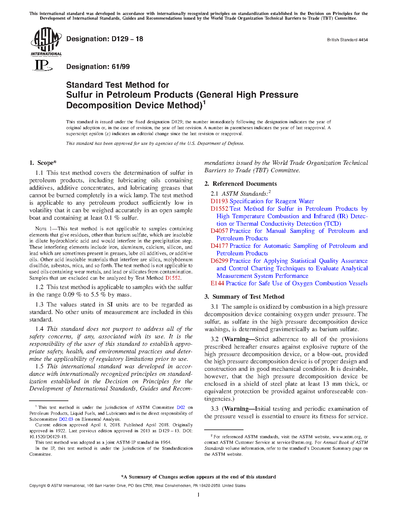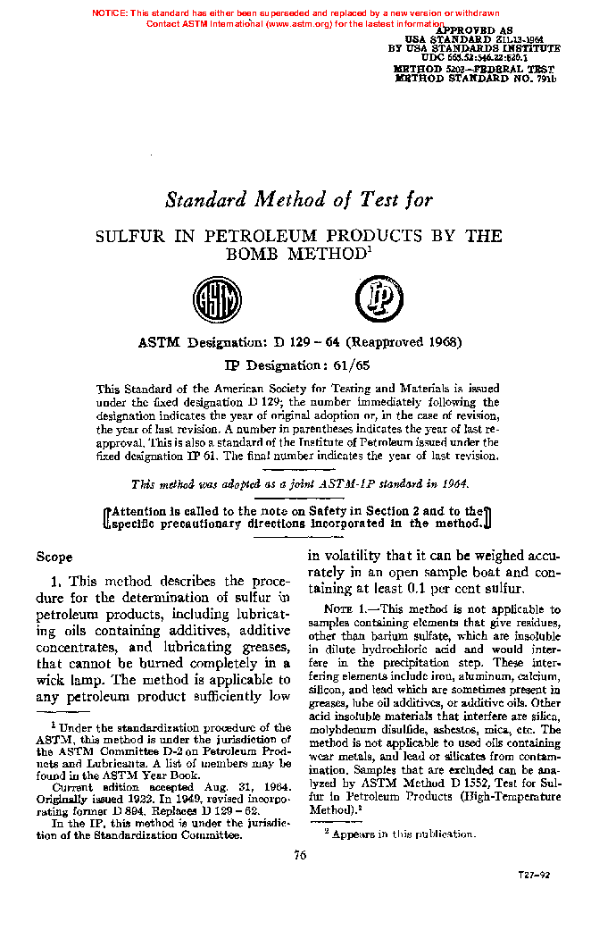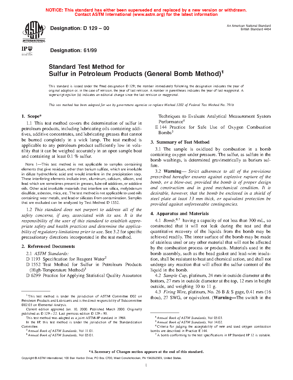 This standard details the general bomb test method for determination of the amount of sulfur in lubricating oils with additives, additive concentrates, lubricating greases, and other petroleum products with low volatilities. This test method entails oxidizing samples by combustion in a bomb containing oxygen under pressure. The amount of sulfur is determined by gravimetry. Materials needed for the test include a combustion bomb, sample cup, firing wire, ignition circuit, and a cotton wicking or nylon sewing thread. All reagents, samples, and other chemicals used for the test should conform to the required concentration and purity.