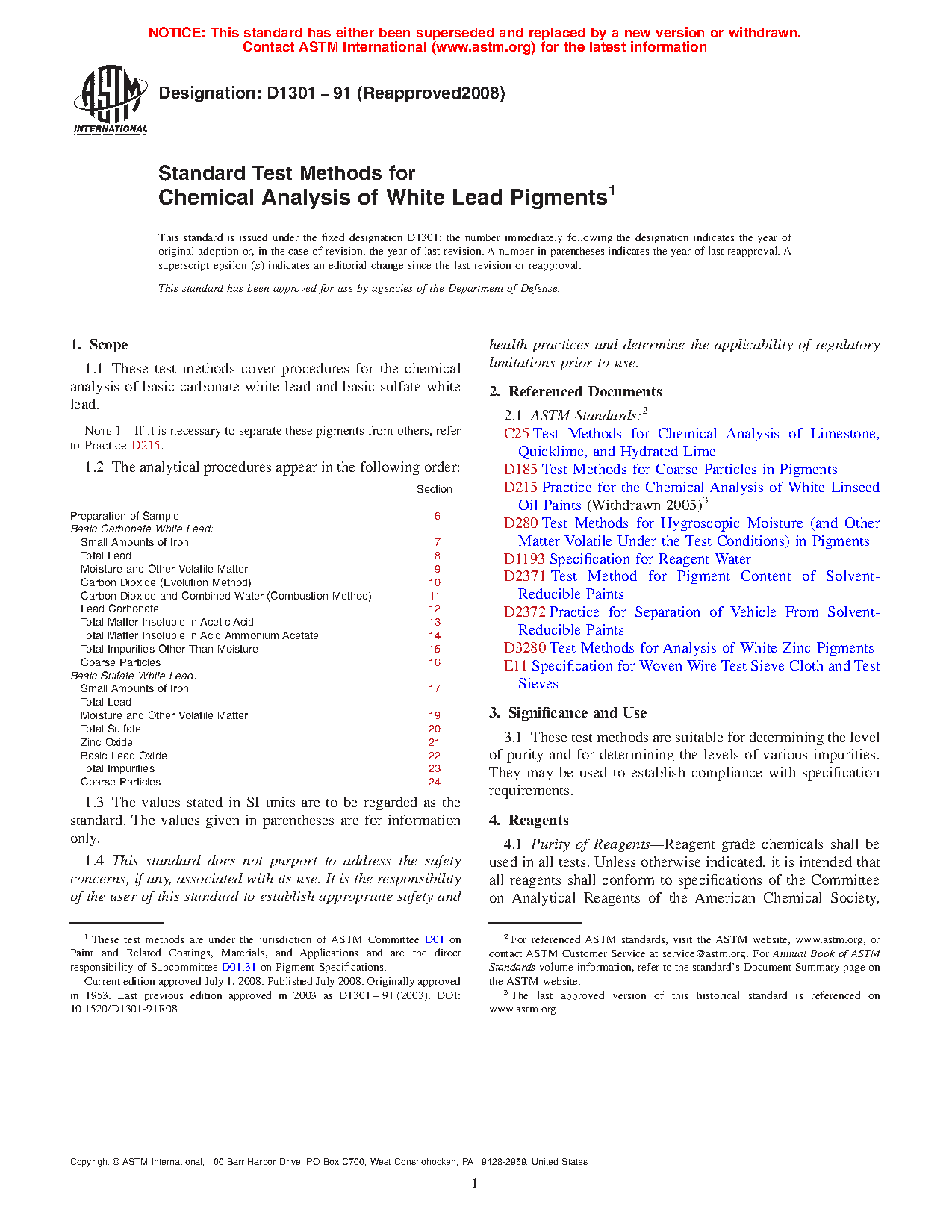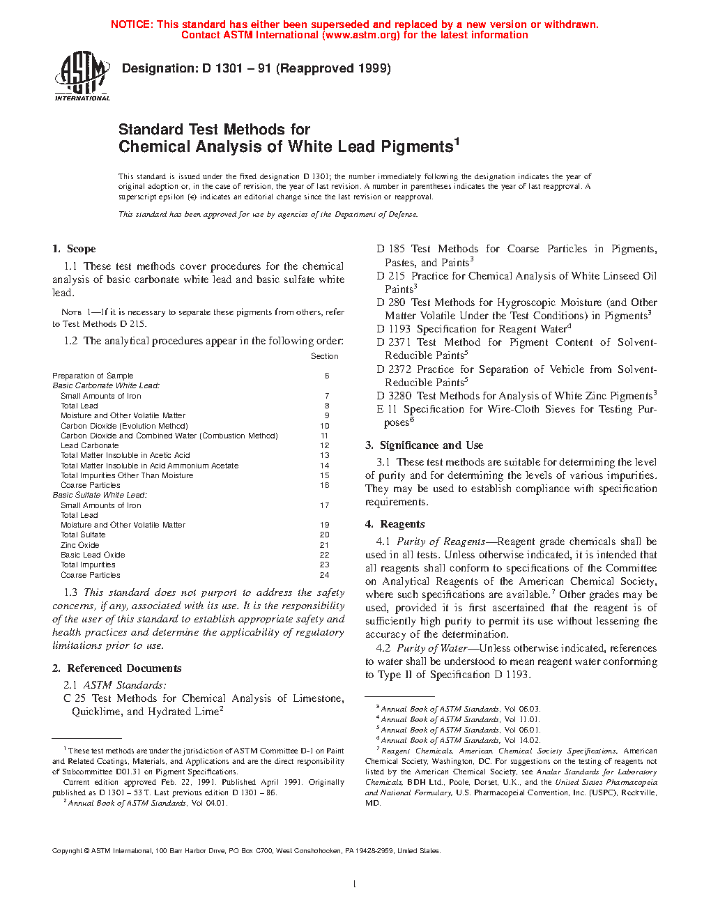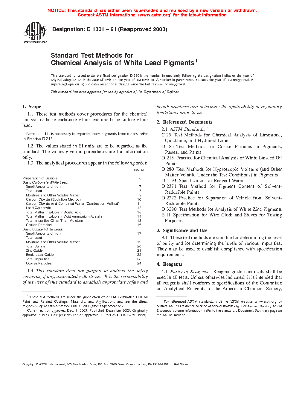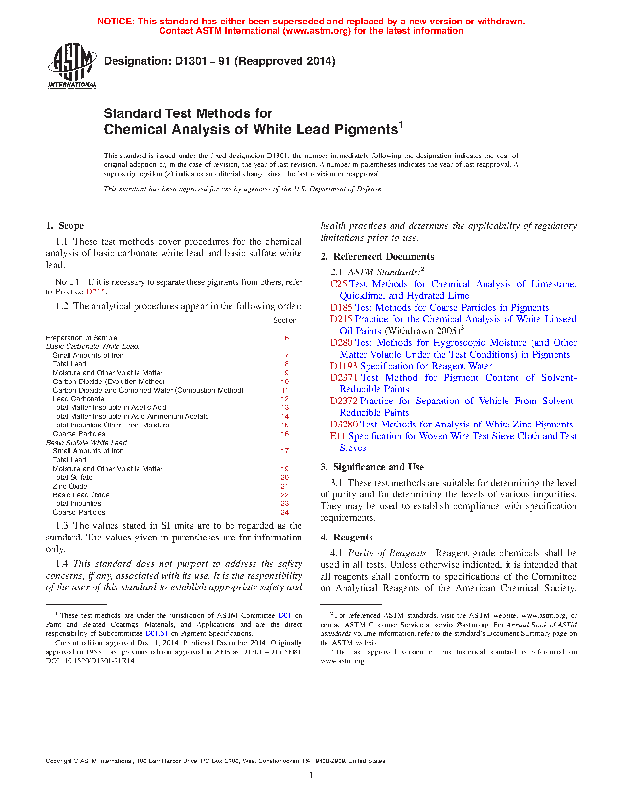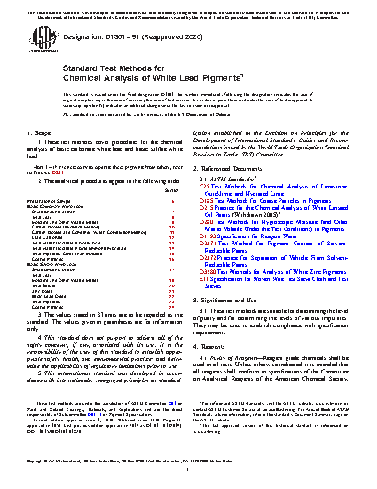 1.1 These test methods cover procedures for the chemical analysis of basic carbonate white lead and basic sulfate white lead.