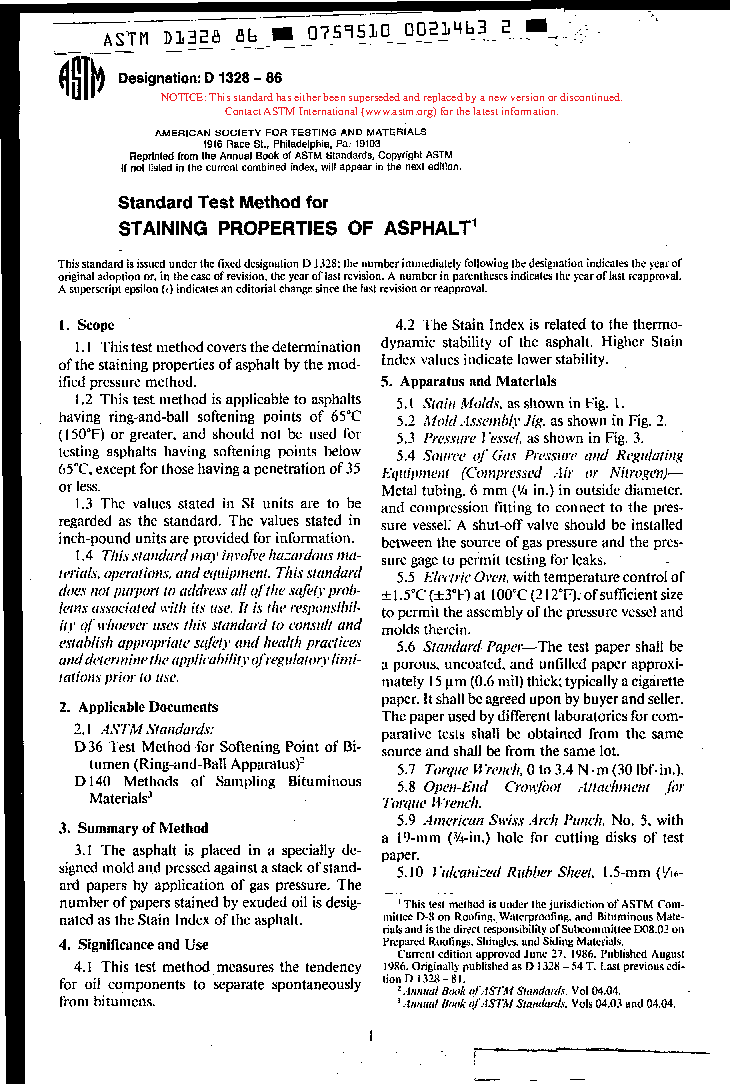 Test Method for Staining Properties of Asphalt (Withdrawn 1992)