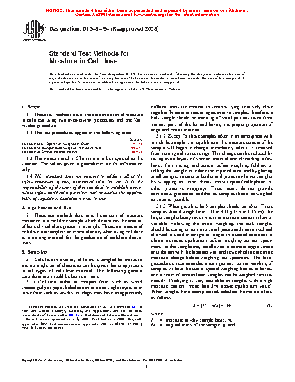 Standard Test Methods for Moisture in Cellulose