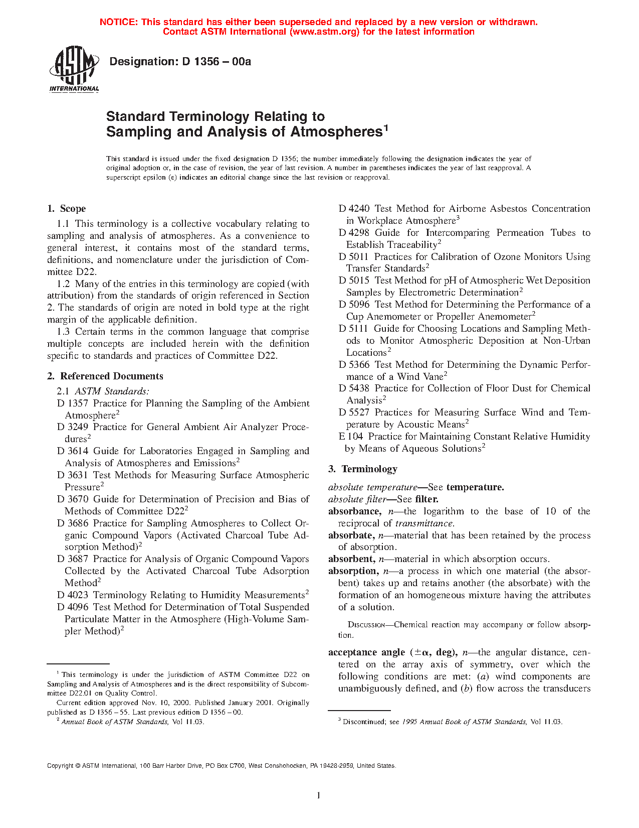 Standard Terminology Relating to Sampling and Analysis of Atmospheres