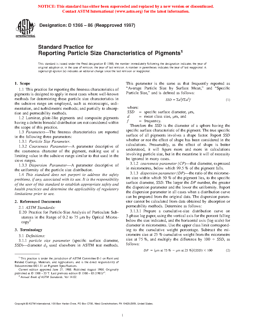 1.3 Parameters—The fineness characteristics are reported in the following three parameters: