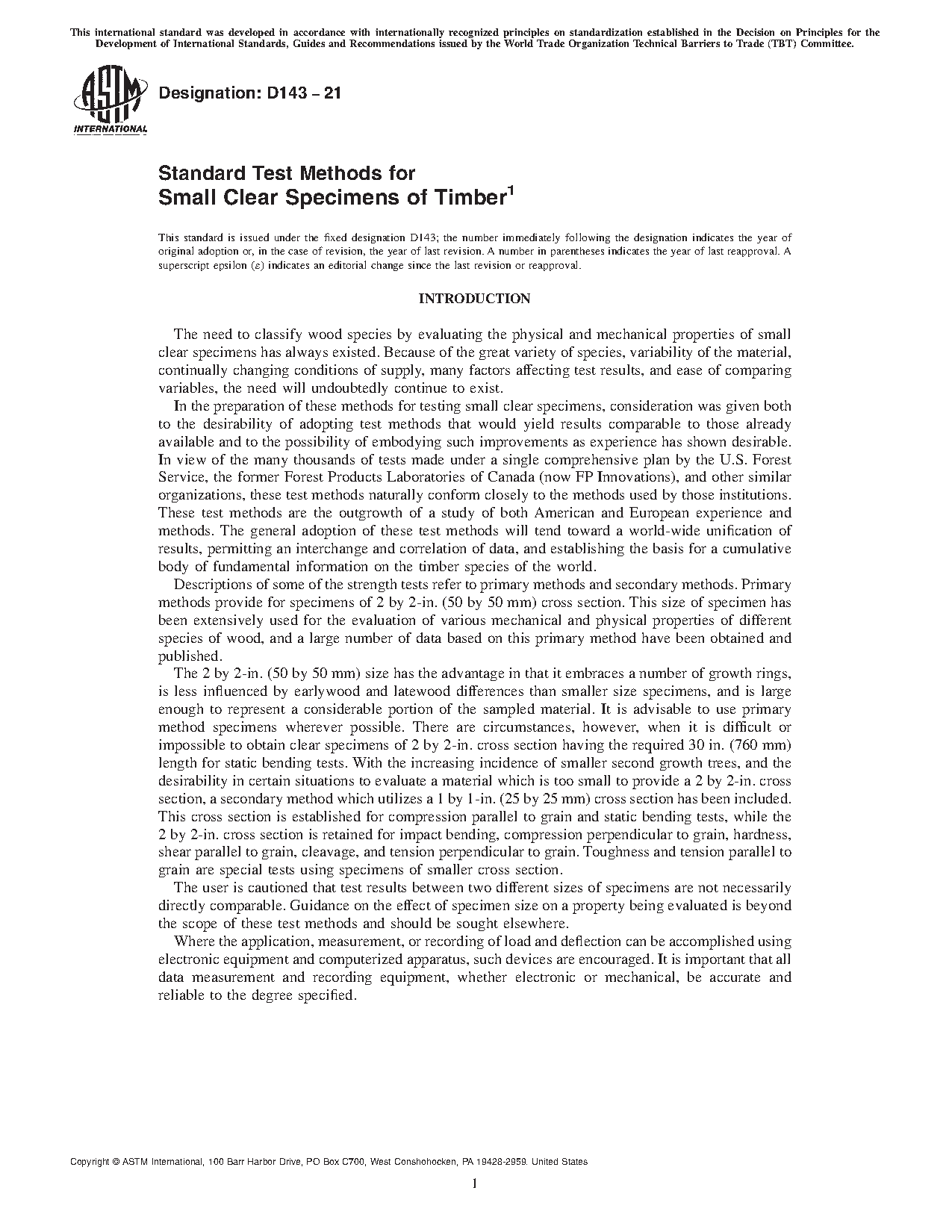 1.1.1 These test methods represent procedures for evaluating the different mechanical and physical properties, controlling factors such as specimen size, moisture content, temperature, and rate of loading.