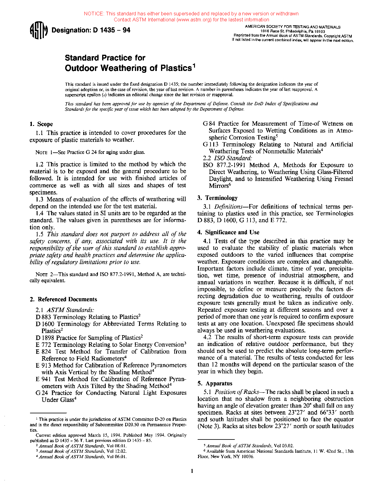 1.1 This practice is intended to cover procedures for the exposure of plastic materials to weather. Note 1See Practice G 24 for aging under glass.