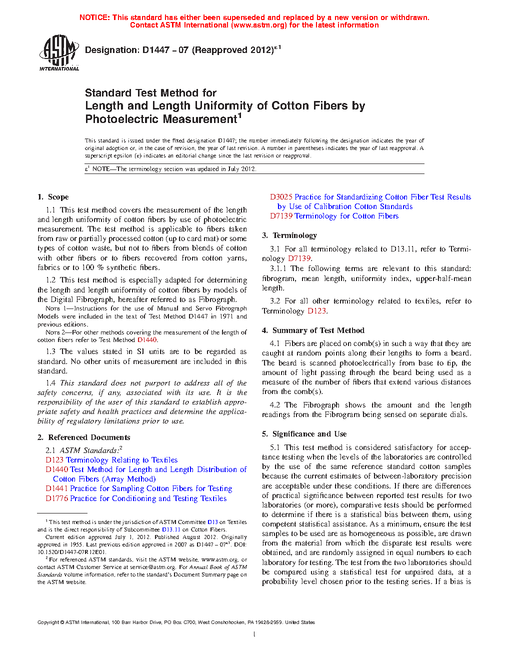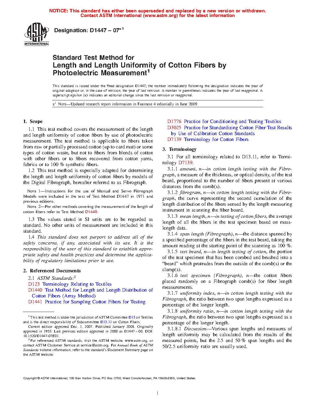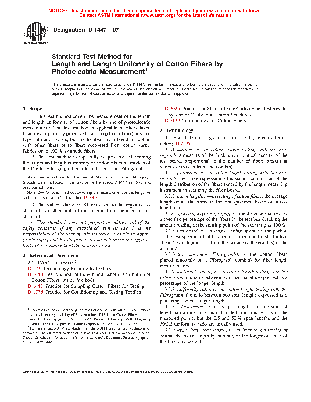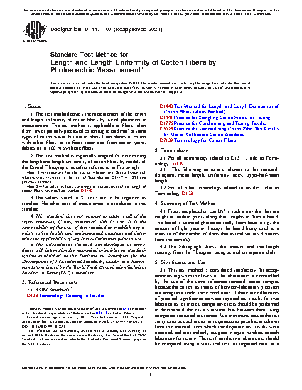 1.2 This test method is especially adapted for determining the length and length uniformity of cotton fibers by models of the Digital Fibrograph, hereafter referred to as Fibrograph.