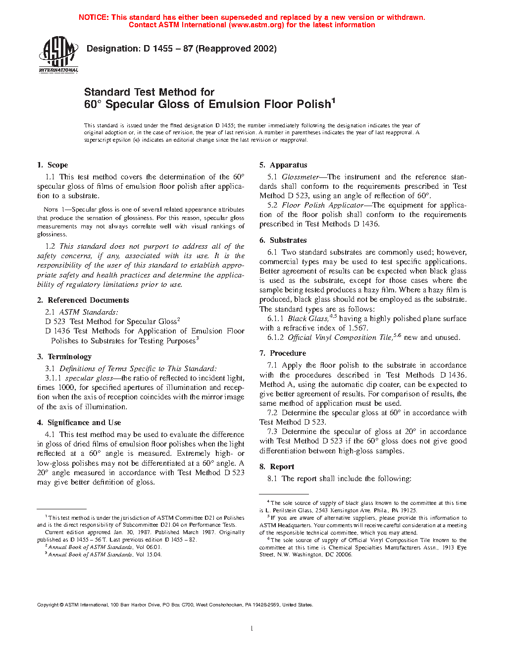 Standard Test Method for 60° Specular Gloss of Emulsion Floor Polish