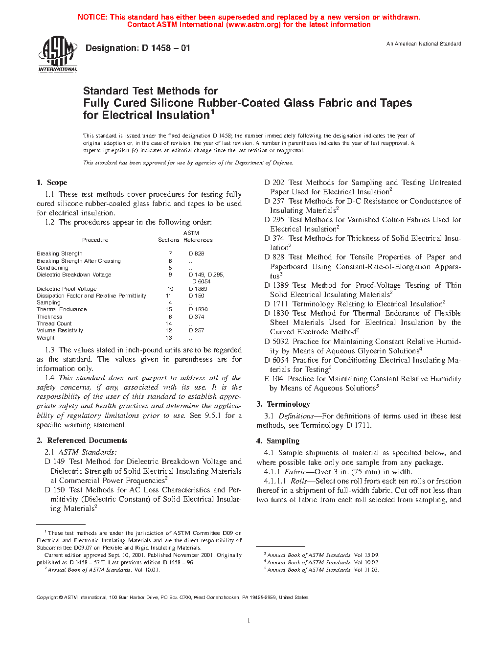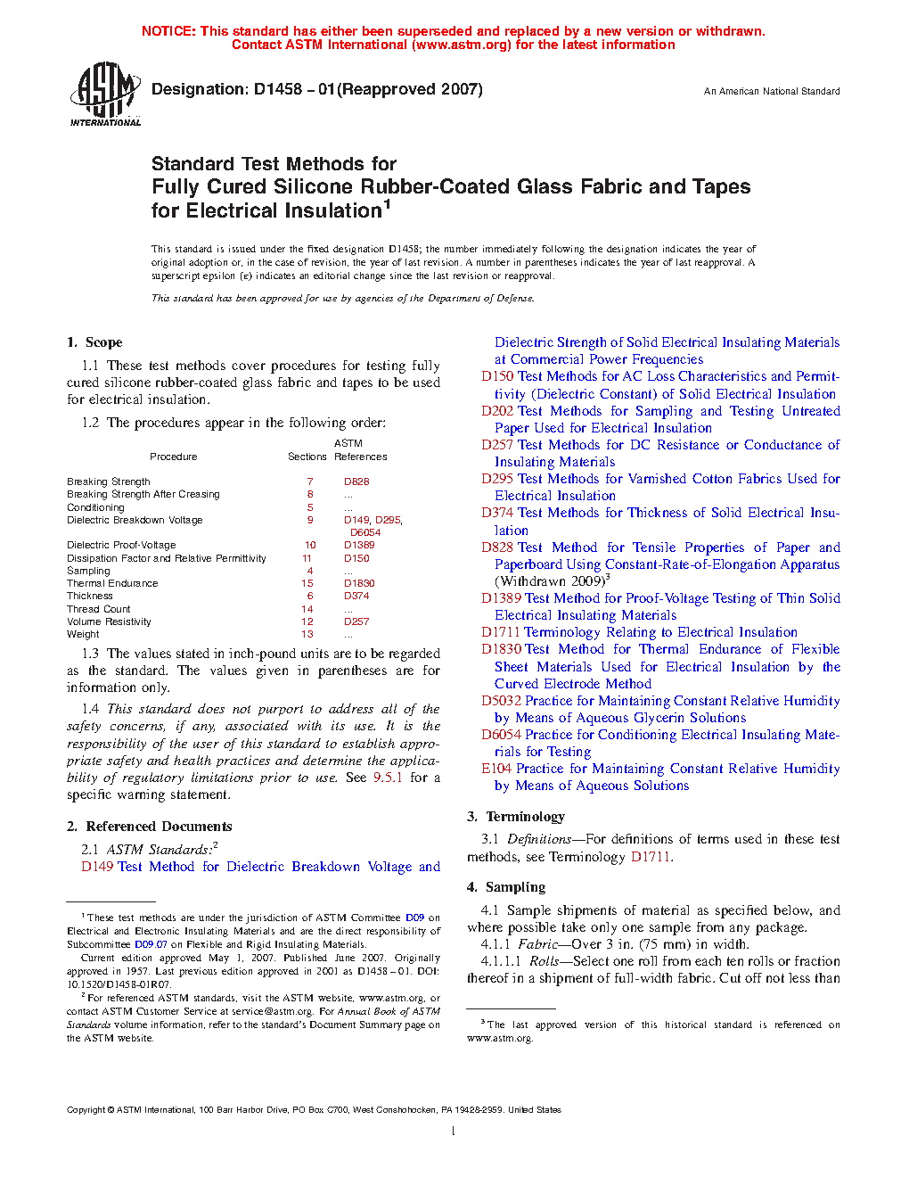 Standard Test Methods for Fully Cured Silicone Rubber-Coated Glass Fabric and Tapes for Electrical Insulation