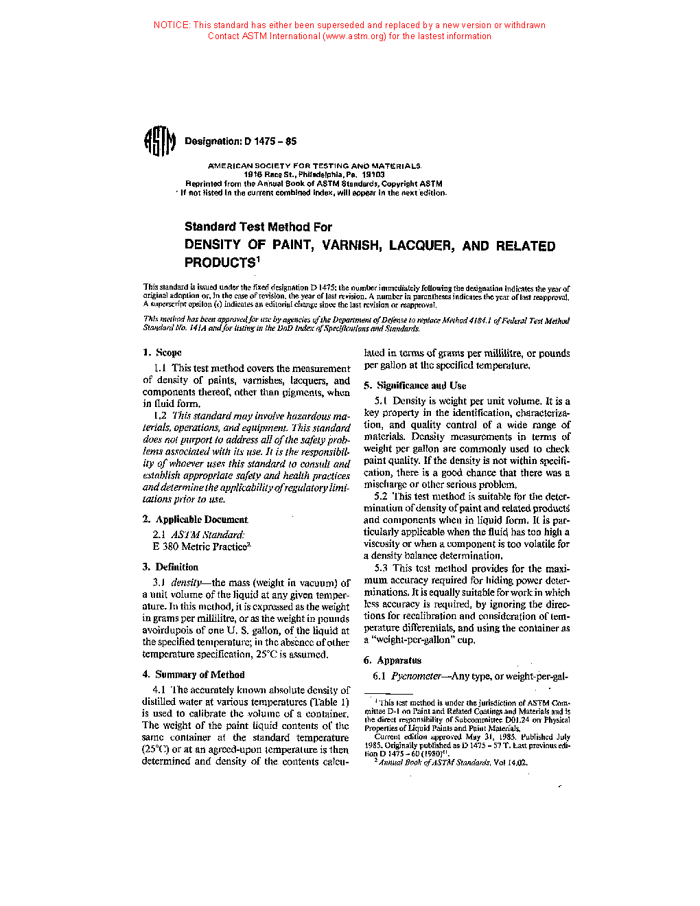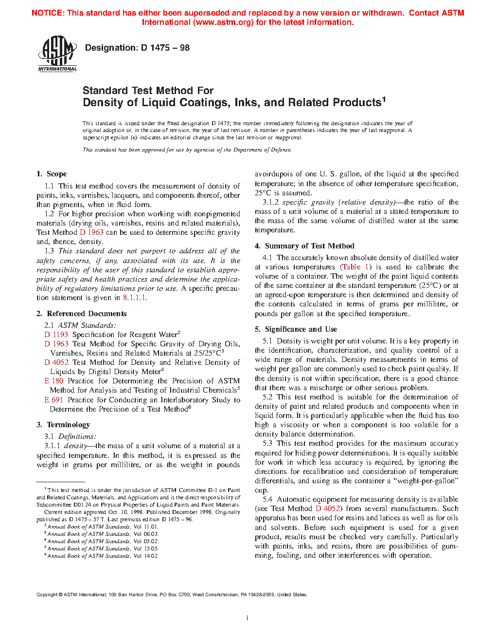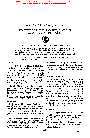 1.2 For higher precision when working with nonpigmented materials (drying oils, varnishes, resins and related materials), Test Method D1963 can be used to determine specific gravity and, thence, density.