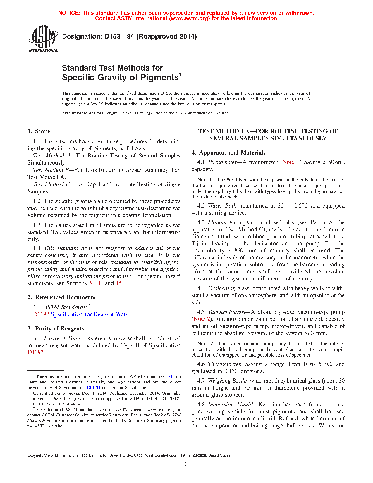 1.2 The specific gravity value obtained by these procedures may be used with the weight of a dry pigment to determine the volume occupied by the pigment in a coating formulation.