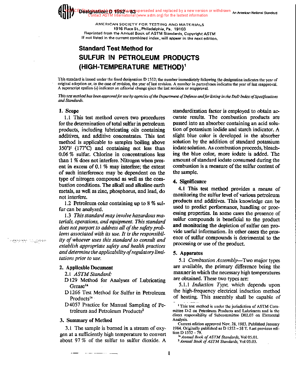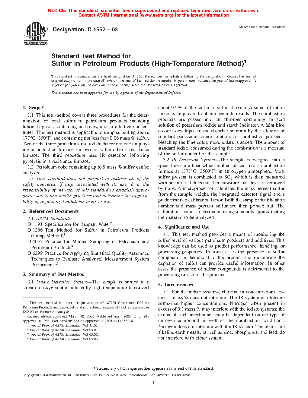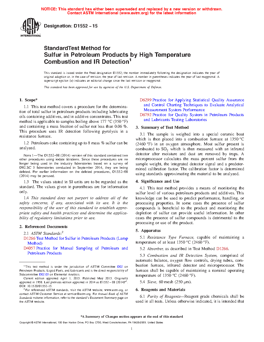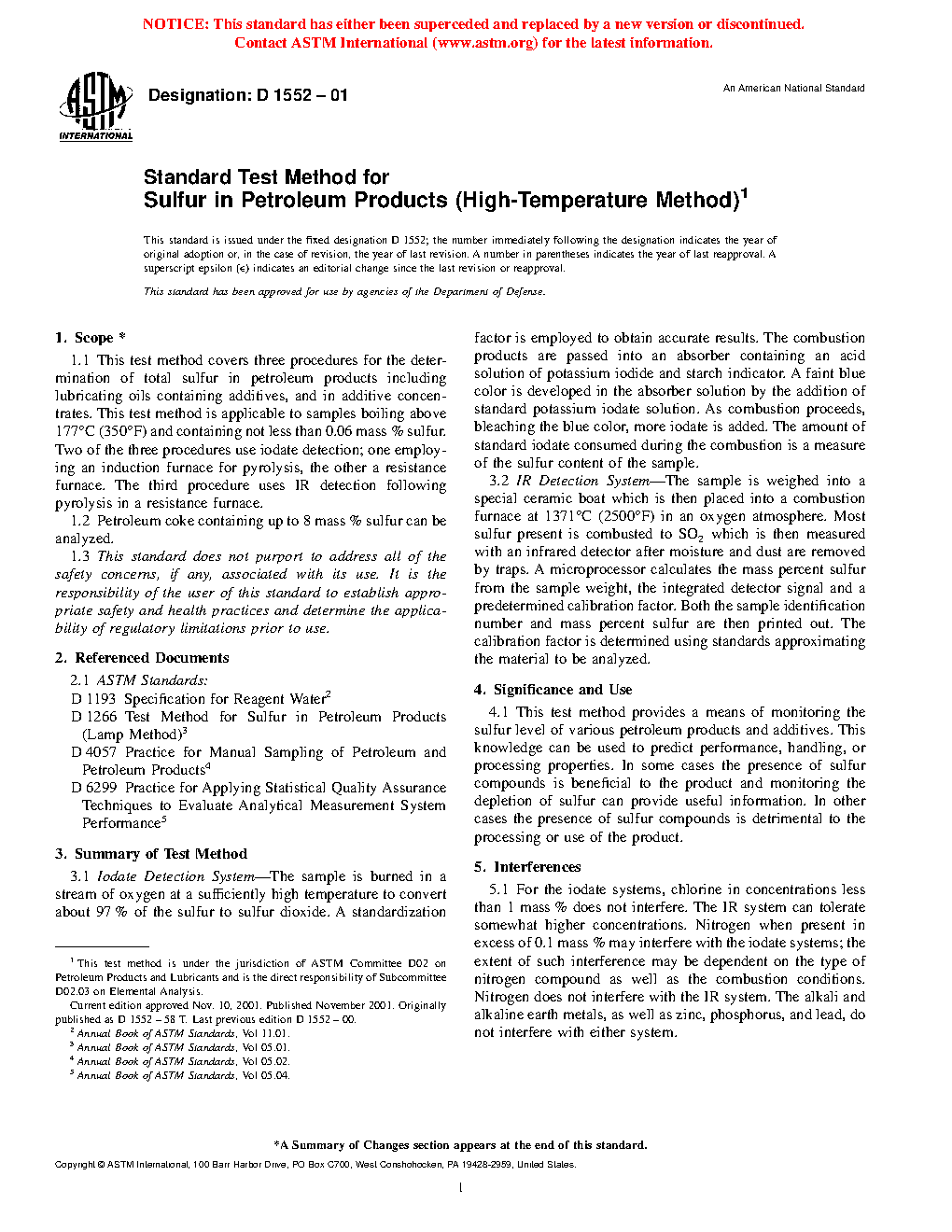 Note 1: The D1552–08 (2014) version of this standard contained two other procedures using iodate titrations. Since these procedures are no longer being used in the industry laboratories based on a survey of D02.SC 3 laboratories conducted in September 2014, they are being deleted. For earlier information on the deleted procedures, D1552–08 (2014) may be perused.