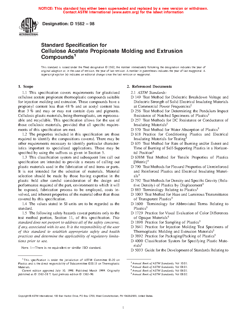 1.1 This classification system covers requirements for plasticized cellulose acetate propionate thermoplastic compounds suitable for injection molding and extrusion. These compounds have a propionyl content less than 48 % and an acetyl content less than 3 % and can contain dyes and pigments. Cellulosic plastic materials, being thermoplastic, are reprocessable and recyclable. This classification system allows for the use of those cellulosic materials, provided that all specific requirements of this classification system are met.