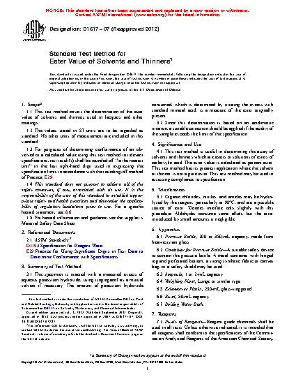 1.1 This test method covers the determination of the ester value of solvents and thinners used in lacquers and other coatings.