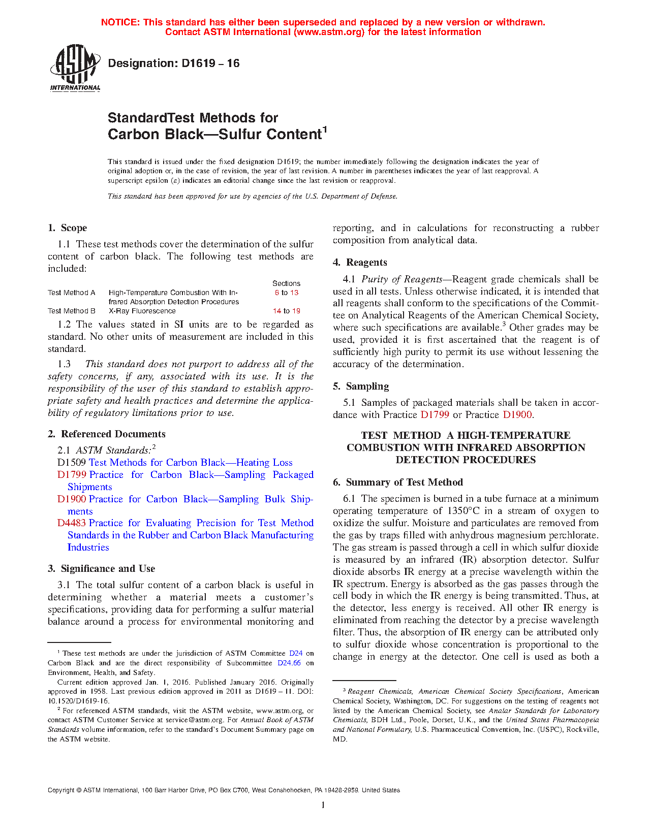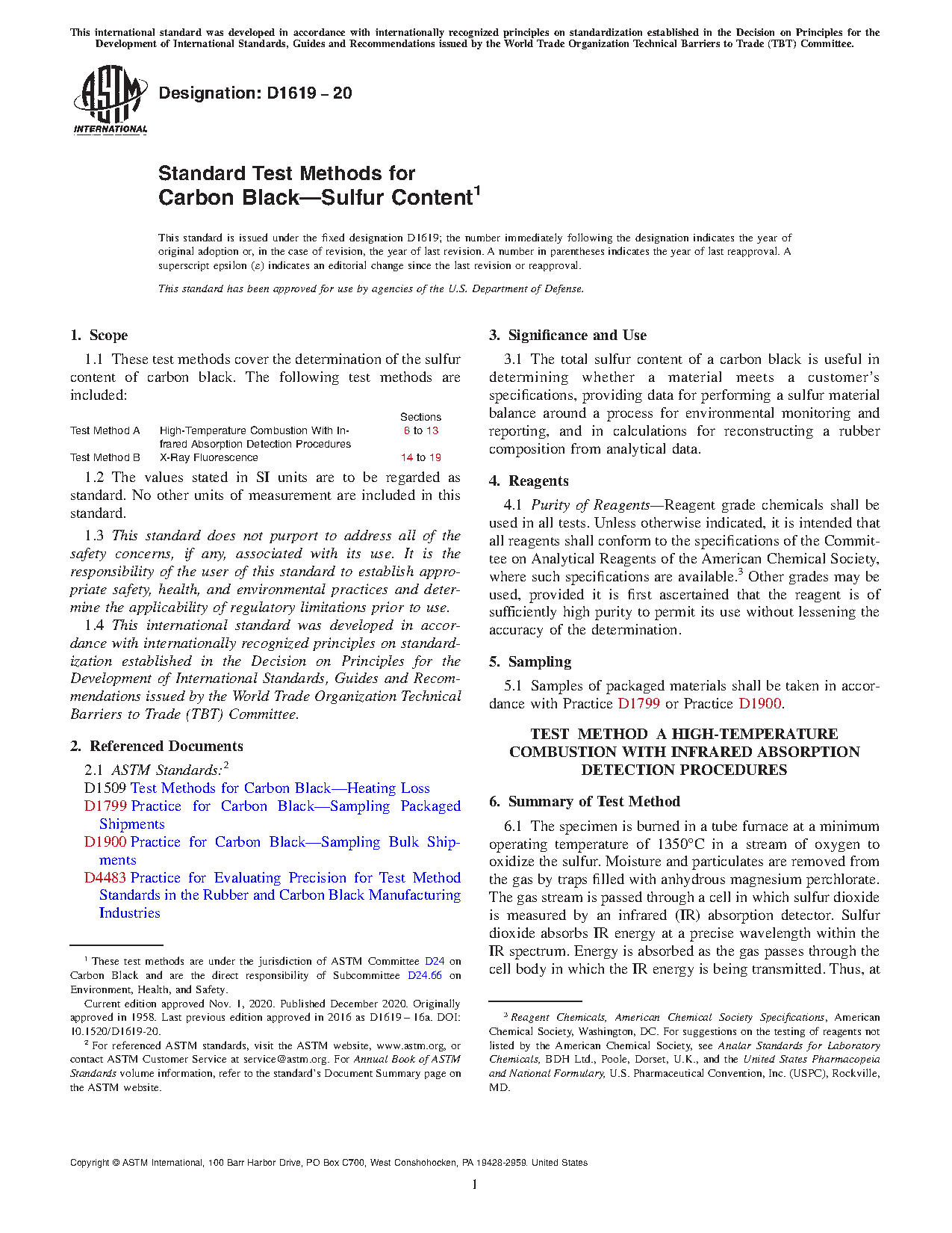 1.1 These test methods cover the determination of the sulfur content of carbon black. The following test methods are included:
