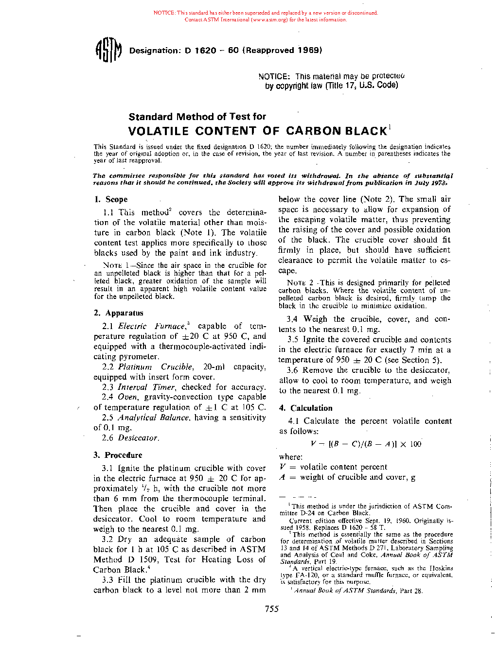 Method of Test for Volatile Content of Carbon Black (Withdrawn 1972)