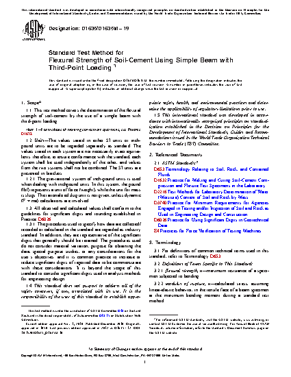 1.1 This test method covers the determination of the flexural strength of soil-cement by the use of a simple beam with third-point loading.