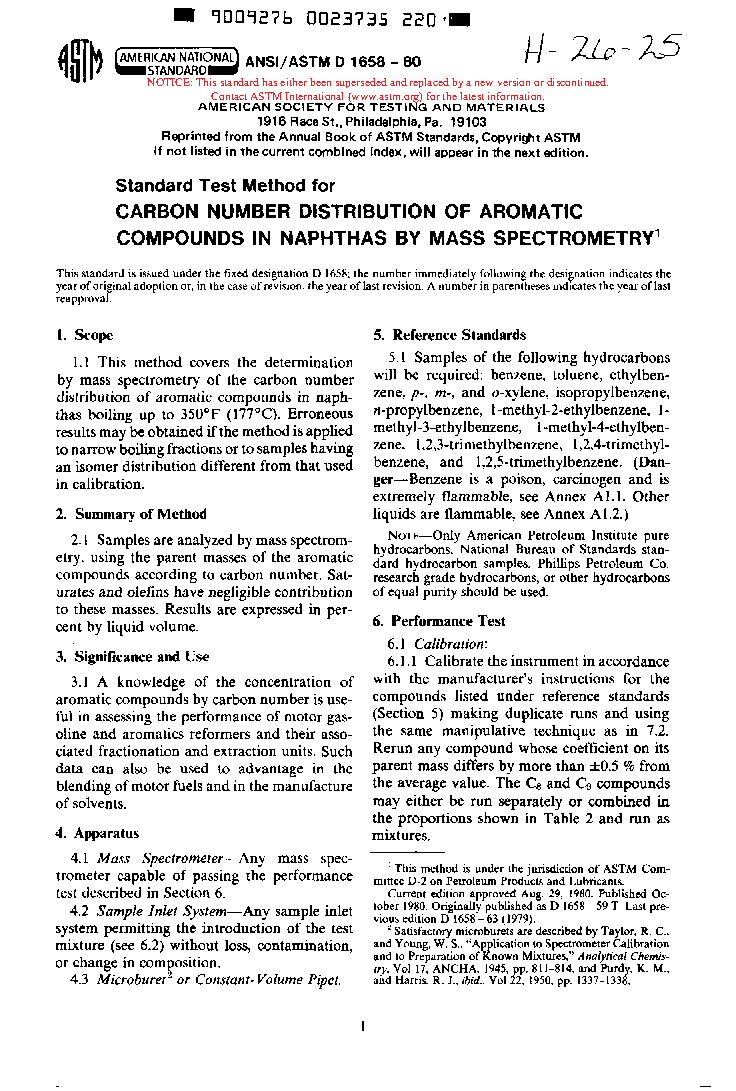 Method of Test for Carbon Number Distribution of Aromatic Compounds in Naphthas by Mass Spectometry (Withdrawn 1983)