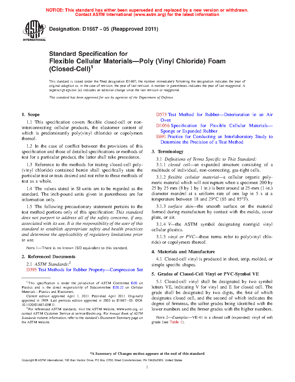 1.1 This specification covers flexible closed-cell or non-interconnecting cellular products, the elastomer content of which is predominantly poly(vinyl chloride) or copolymers thereof.