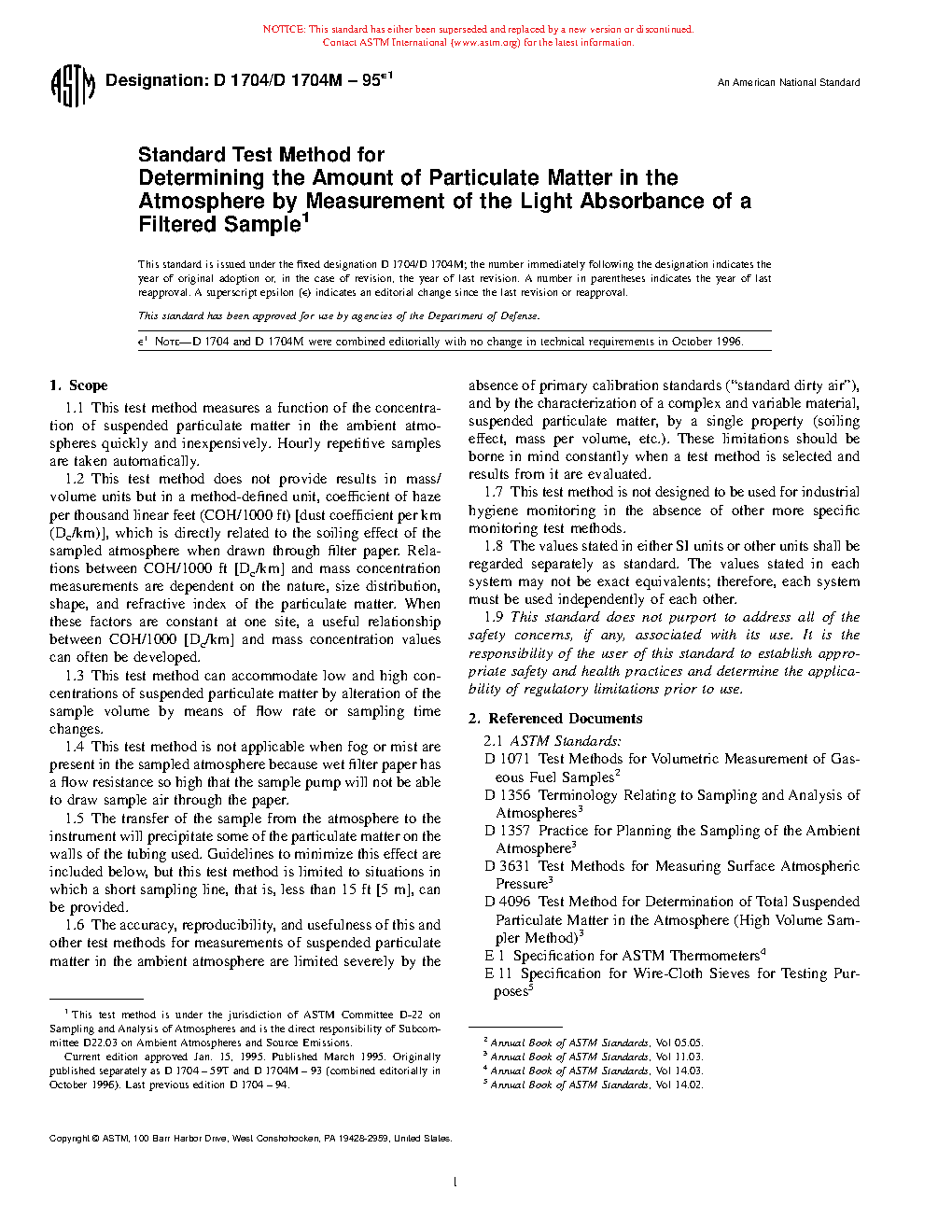 Standard Test Method for Determining the Amount of Particulate Matter in the Atmosphere by Measurement of the Light Absorbance of a Filter Sample