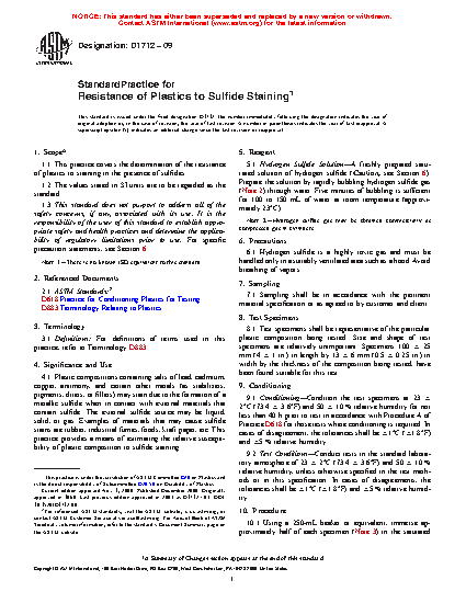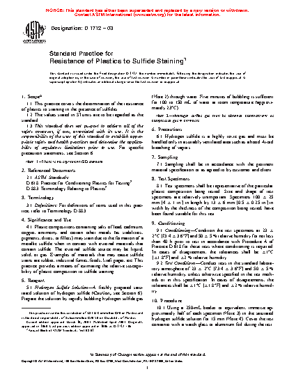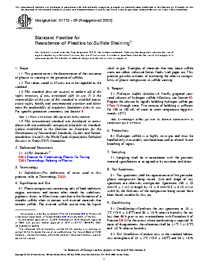 1.1 This practice covers the determination of the resistance of plastics to staining in the presence of sulfides.