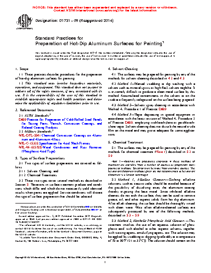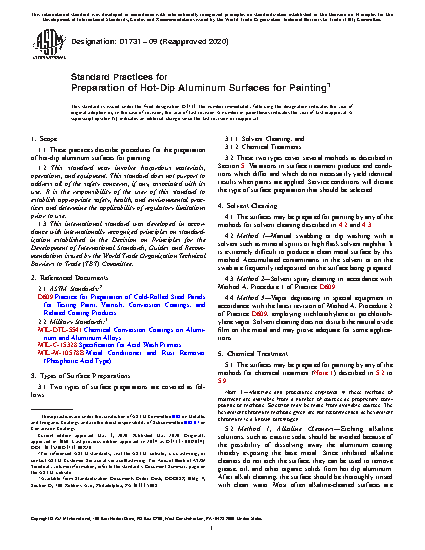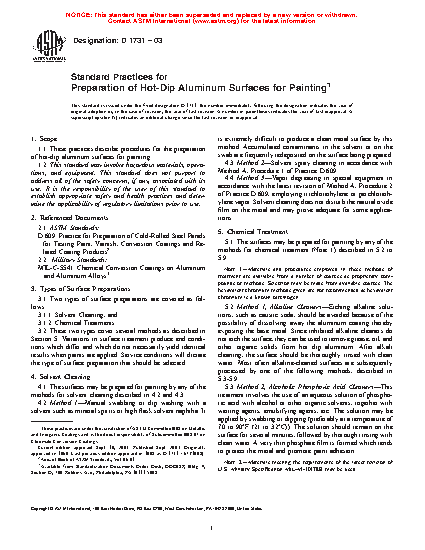 1.1 These practices describe procedures for the preparation of hot-dip aluminum surfaces for painting.
