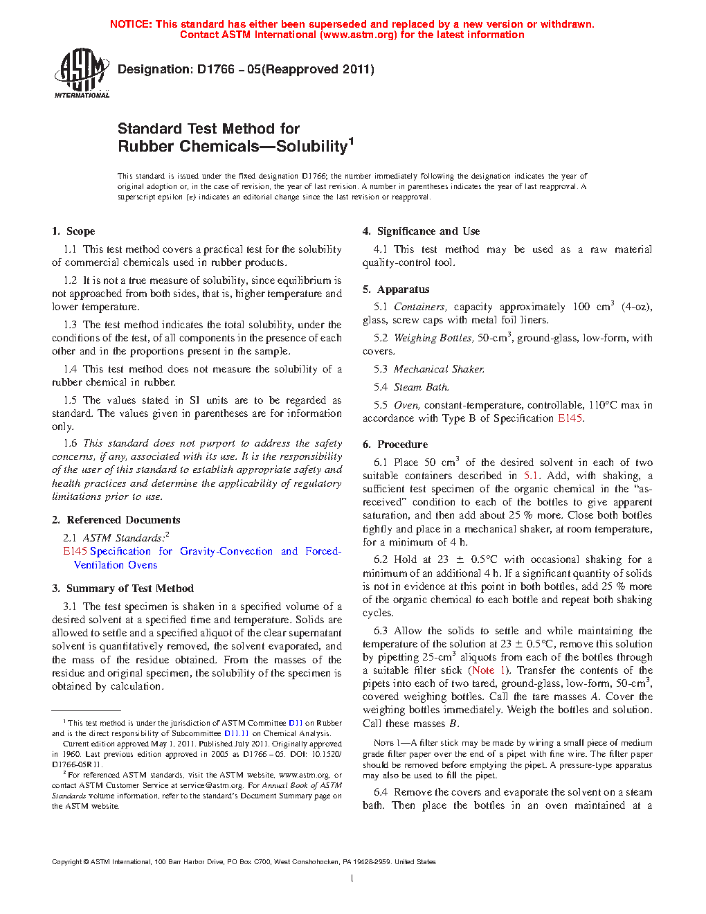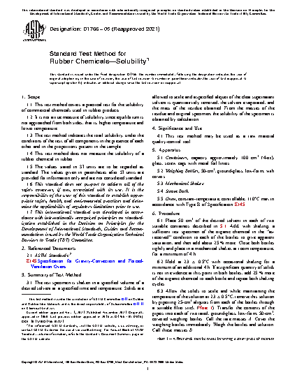 1.1 This test method covers a practical test for the solubility of commercial chemicals used in rubber products.