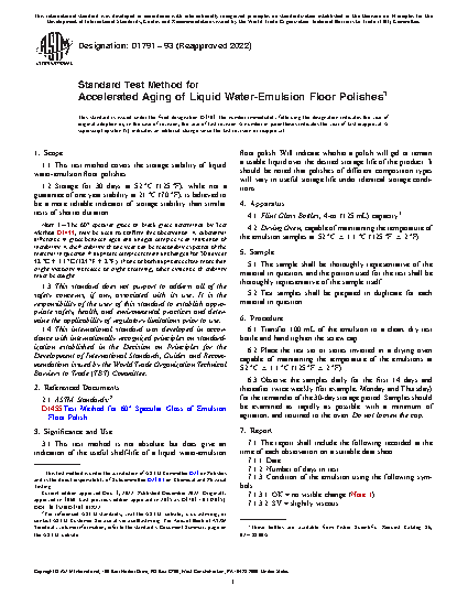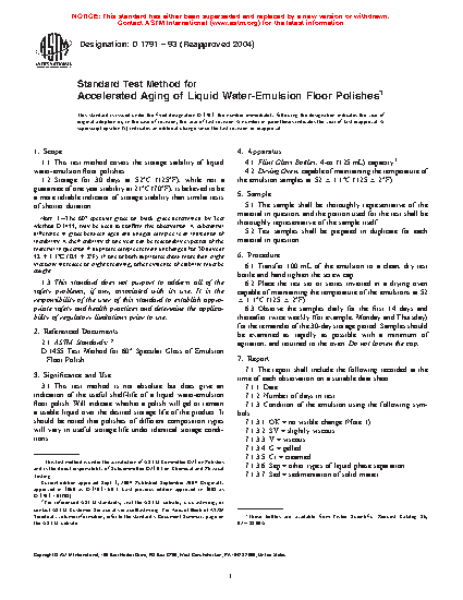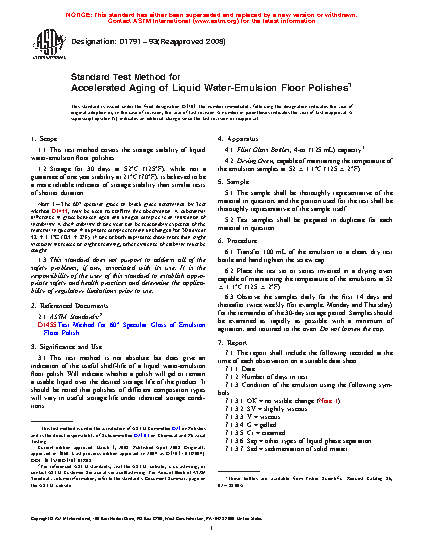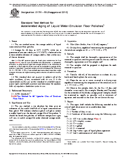 Standard Test Method for Accelerated Aging of Liquid Water-Emulsion Floor Polishes