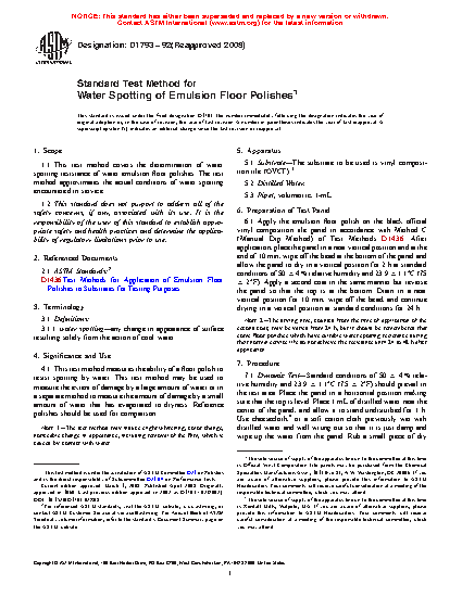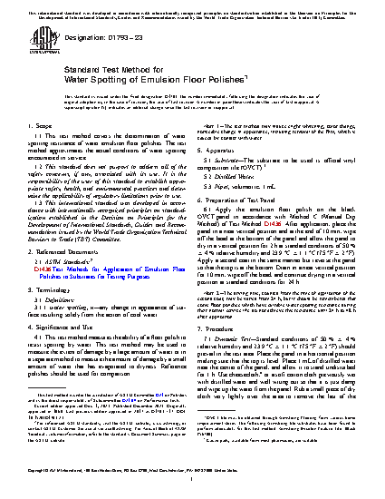 Standard Test Method for Water Spotting of Emulsion Floor Polishes