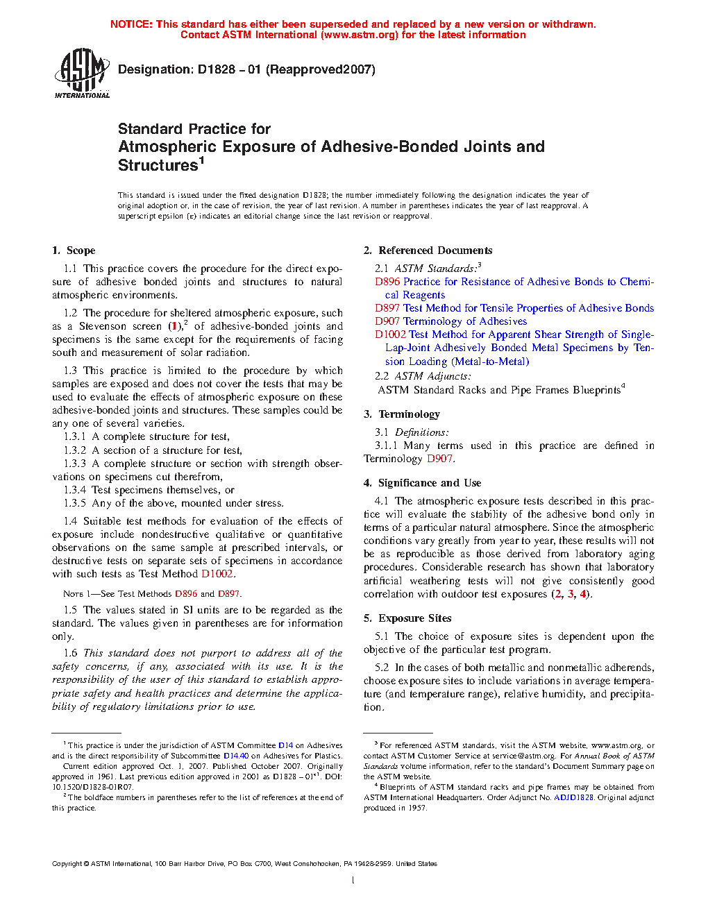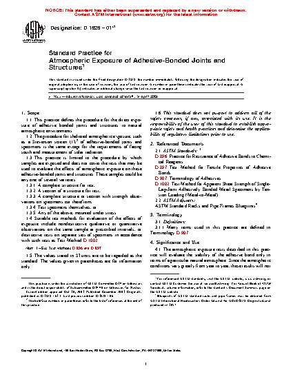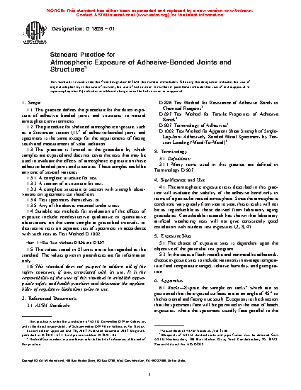 1.3 This practice is limited to the procedure by which samples are exposed and does not cover the tests that may be used to evaluate the effects of atmospheric exposure on these adhesive-bonded joints and structures. These samples could be any one of several varieties.