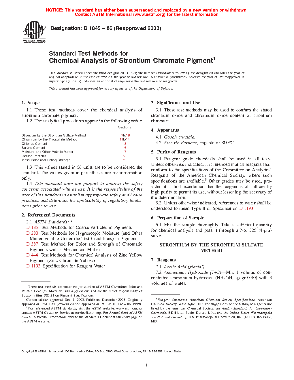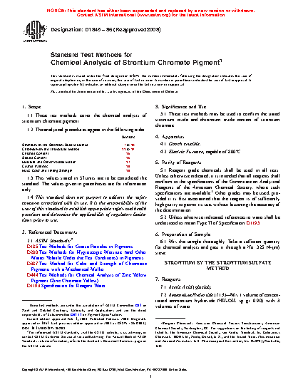 3.1 These test methods may be used to confirm the stated strontium oxide and chromium oxide content of strontium chromate.